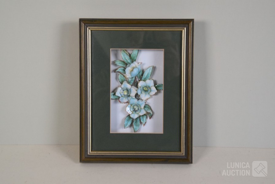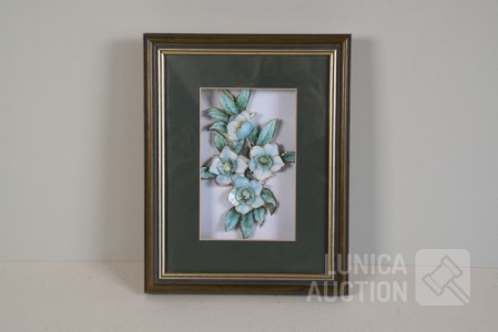 Mooi ingelijst, achter glas. Afmeting 20x25 cm. Op de achterzijde is een sticker van een adres in Kent.