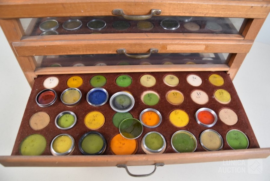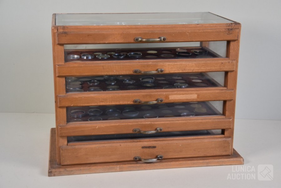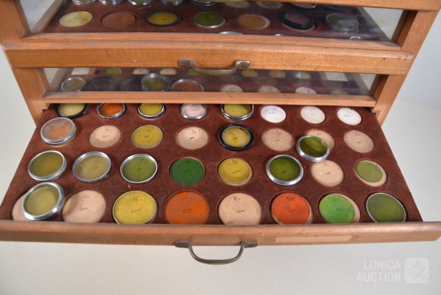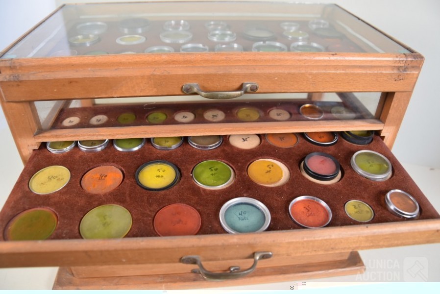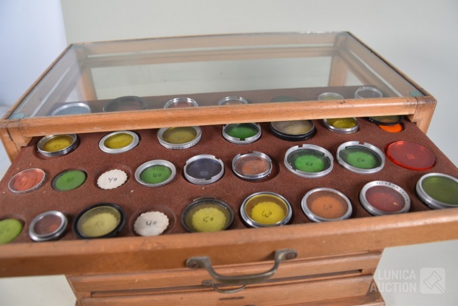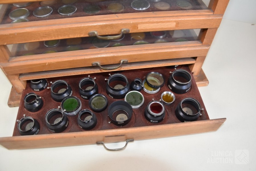 In diverse kleuren en afmetingen. Lens/zonne kappen van KAP. Gekleurde filters voor fotografie. Afmeting van kabinet met 5 laden, (bxdxh) 44x25x35 cm. Deze kavel wordt niet verzonden met een pakketdienst.