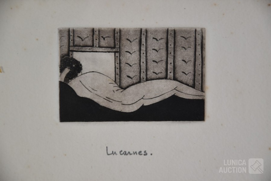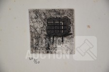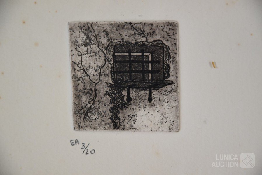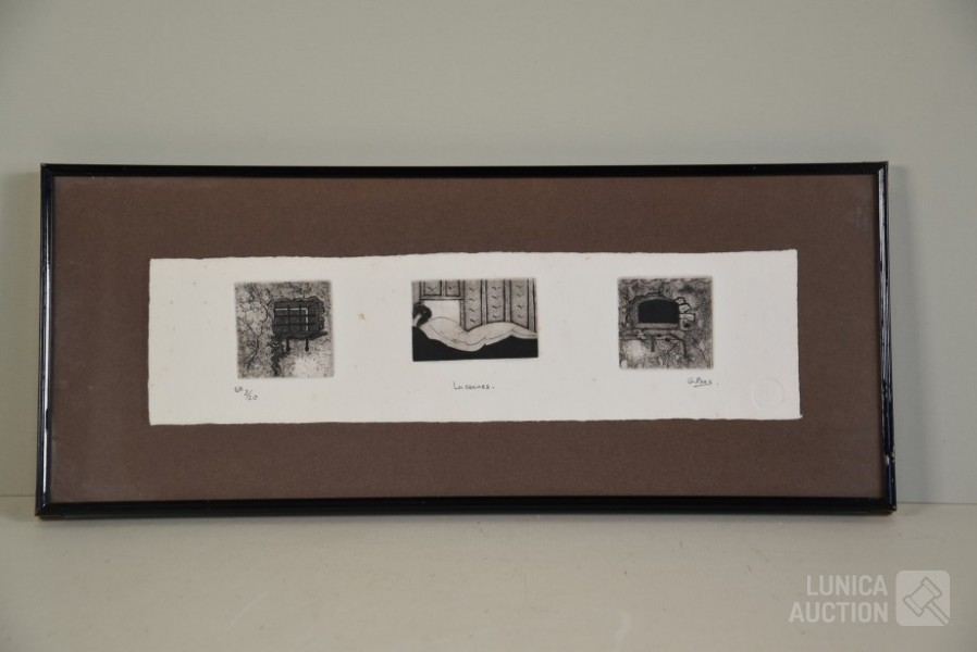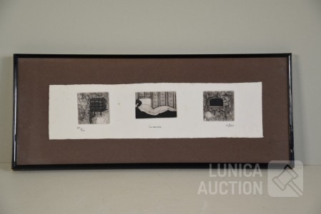 oplage 3/20, E.A.. 3 kleine etsen in één lijst. Afmeting 50x22 cm. Gesigneerd RO.