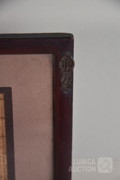 Ingelijst, achter glas. Afmeting 24x18 cm.