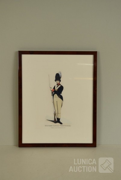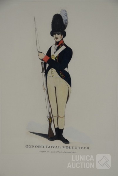 "Oxford Loyal Volunteer", "Published 1799 by T. Taylor Oxford", Ingelijst, achter glas. Afmeting 35x42 cm.