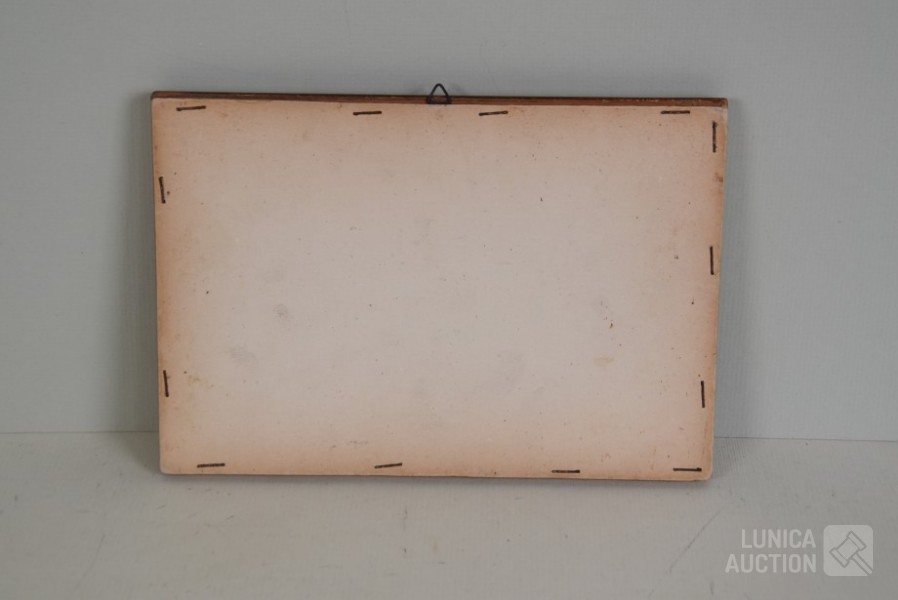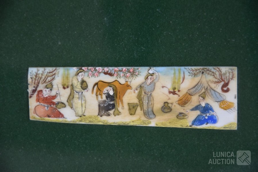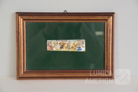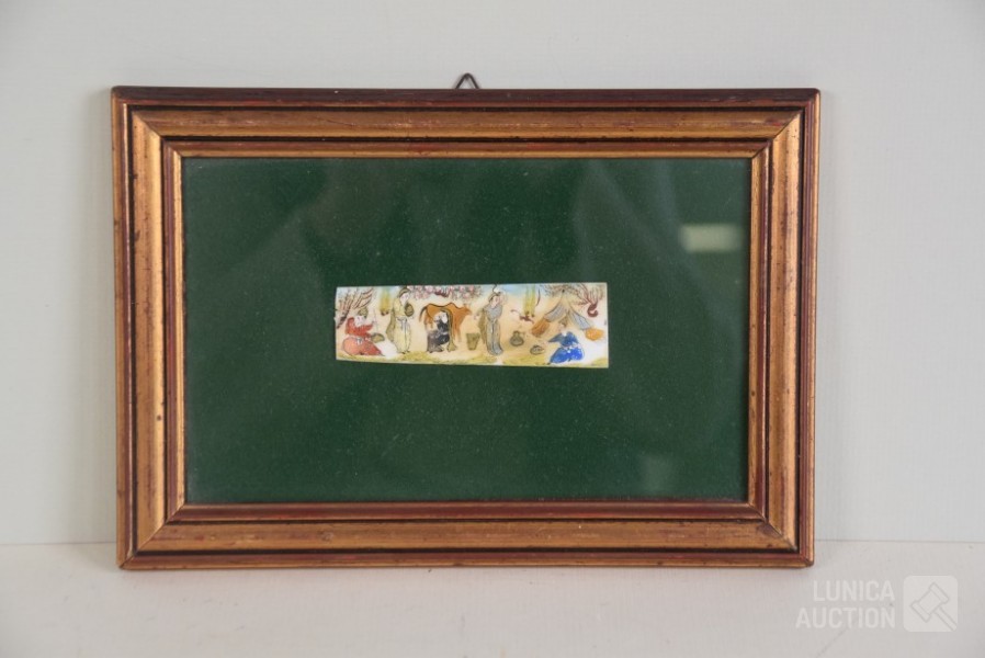 ' een perzische voorstelling", ingelijst, achter glas. Afmeting lijst 25x17 cm, voorstelling 10x3 cm.