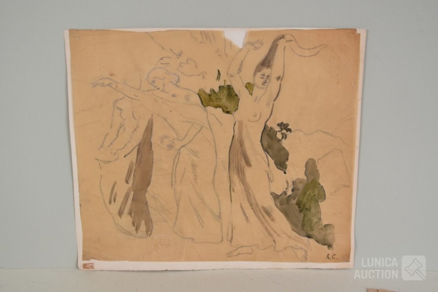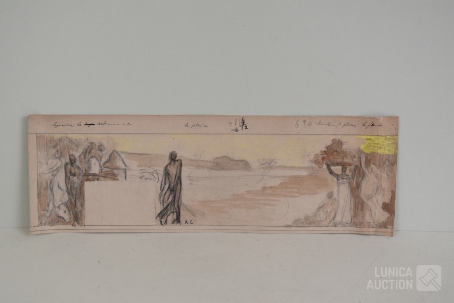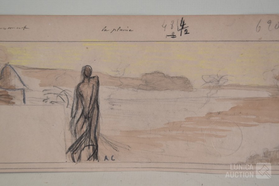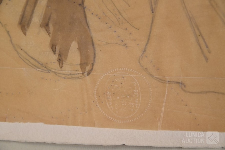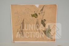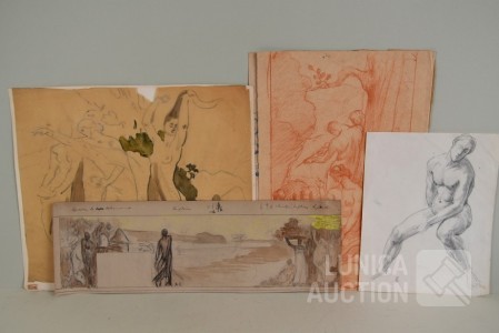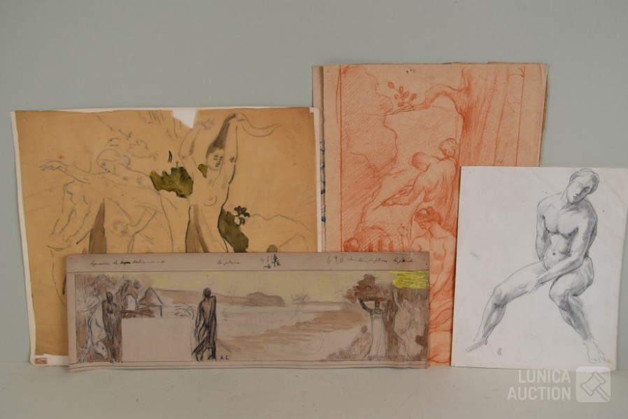op papier. Alle werken zijn voorzien van een stempel/zegel. Afmetingen papier: 22x27 cm, 50x16 cm, 80x40 cm, 40x34 cm.
