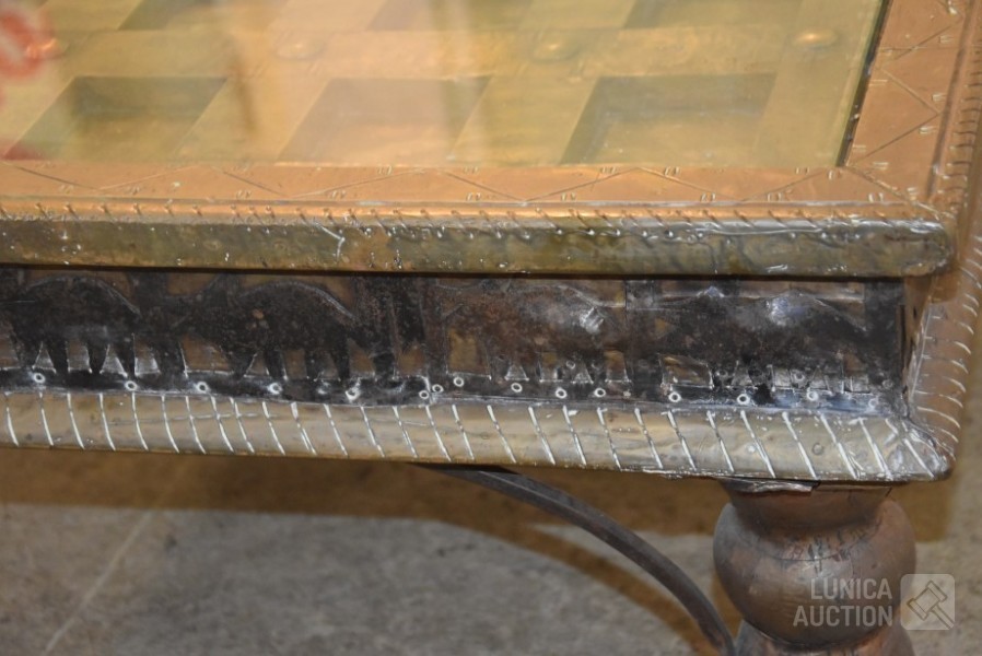 Op de zijkant van de tafel zijn afbeeldingen van dieren. Afmeting (bxdxh) 135x90x40 cm!