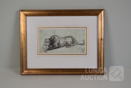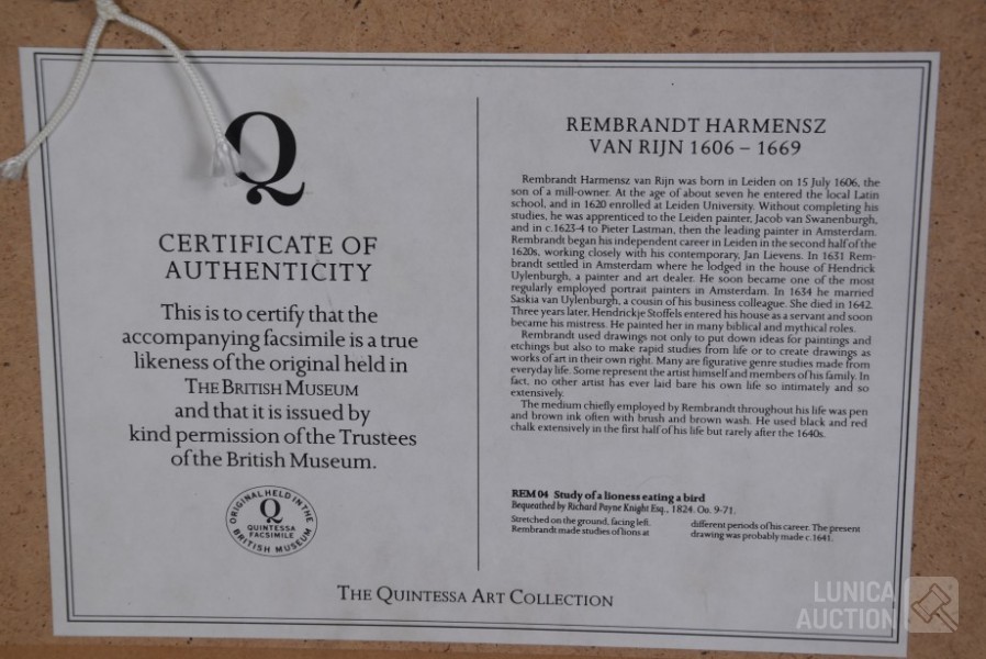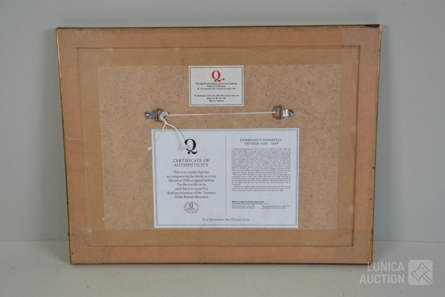 Mooi ingelijst, achter glas. Afmeting 44x34 cm. Op de achterzijde is een certificaat van de makers van de reproductie.