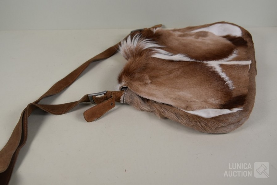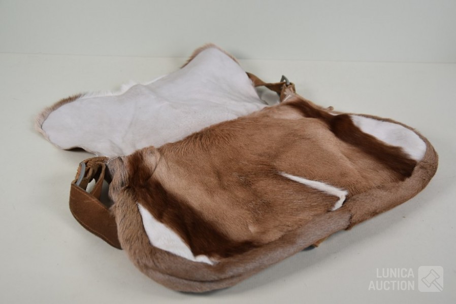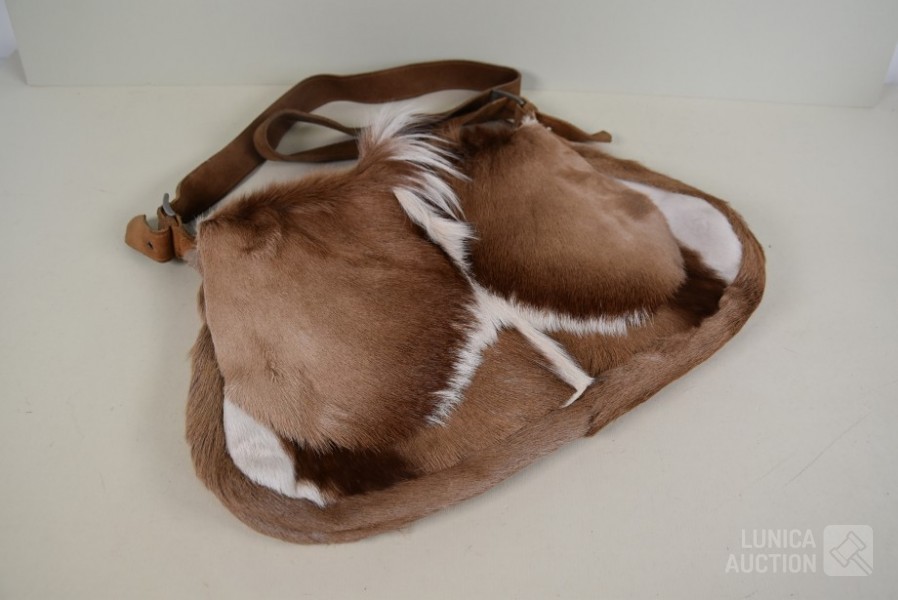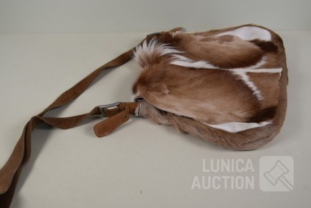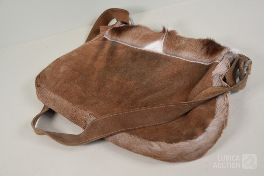 vintage geitenlederen schoudertas. Afmeting 45x30 cm.