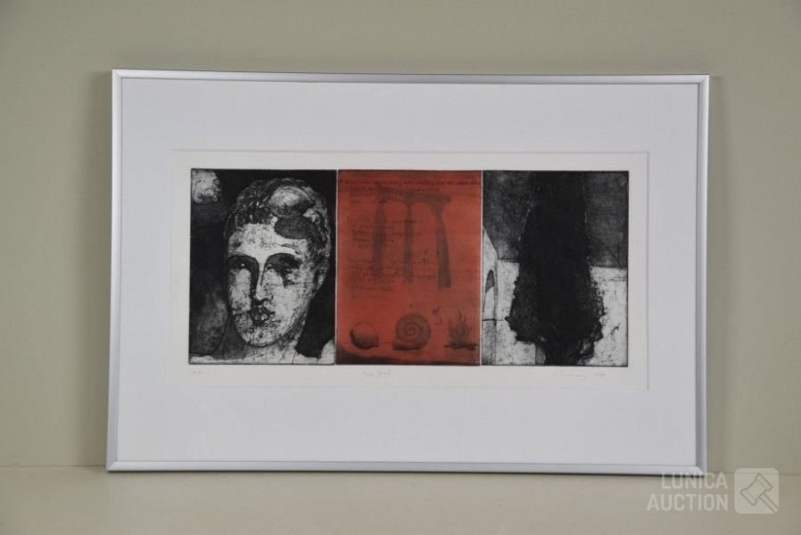 1988, "the dead", ingelijst, achter glas, afmeting 60x40 cm. Handgesigneerd R.O.