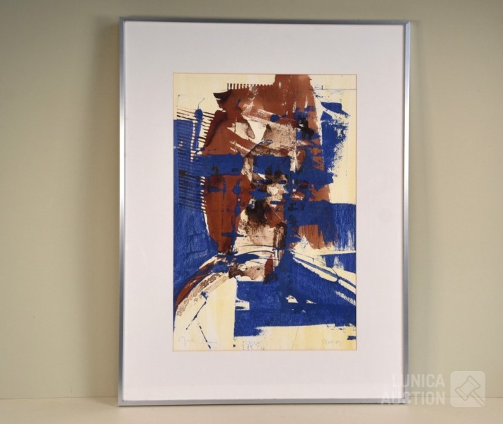 2002, Titel "Face II", ingelijst, achter glas. Afmeting 56x73 cm. Gesigneerd L.O.