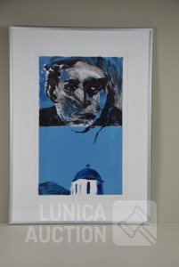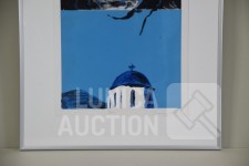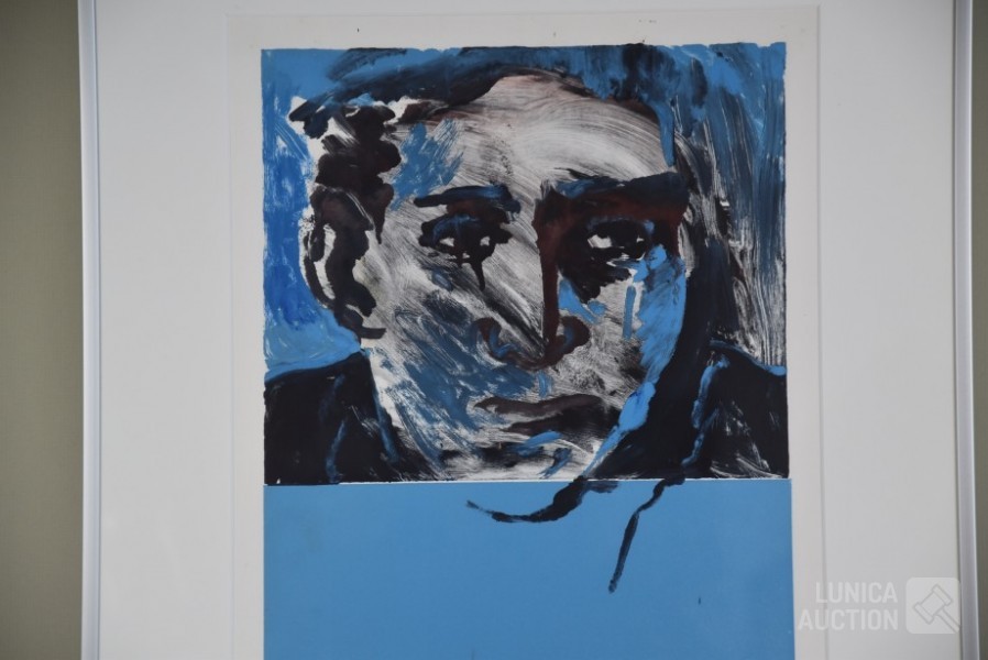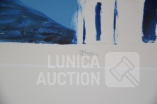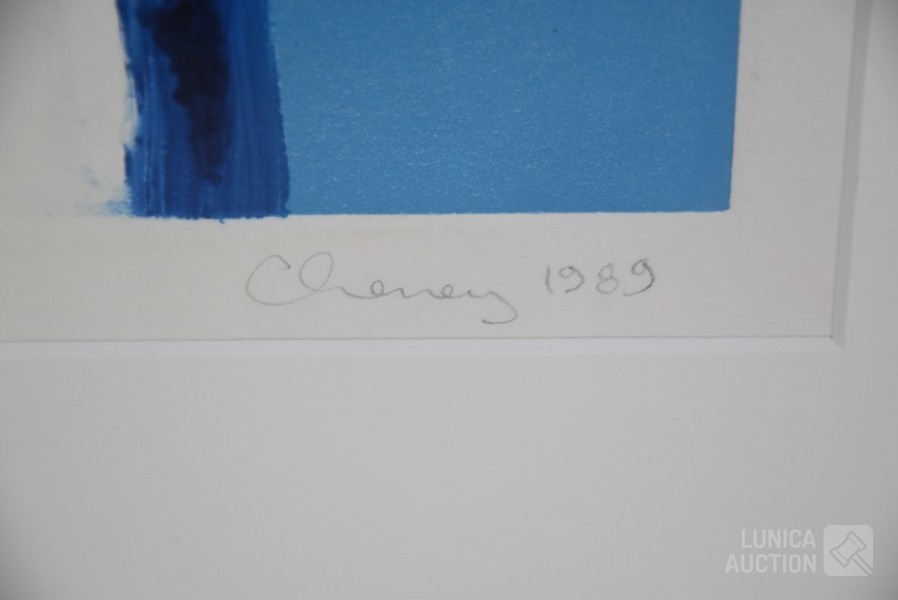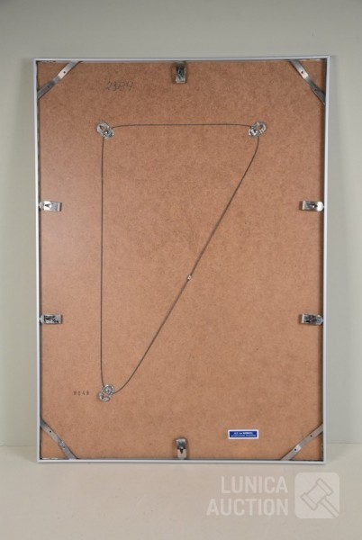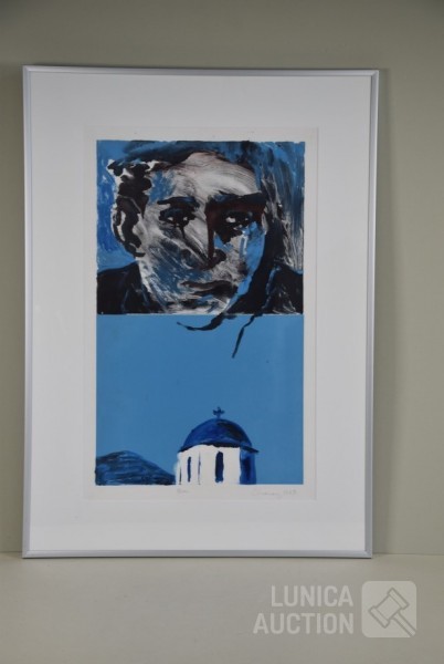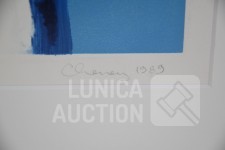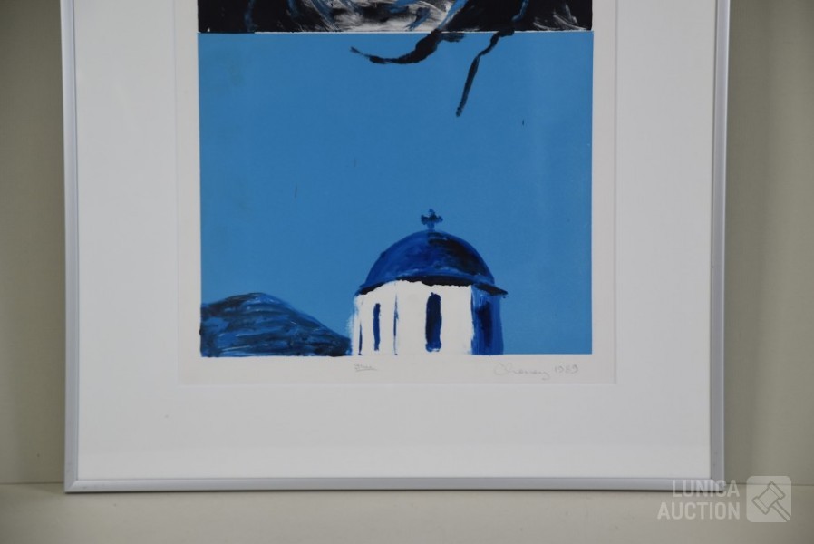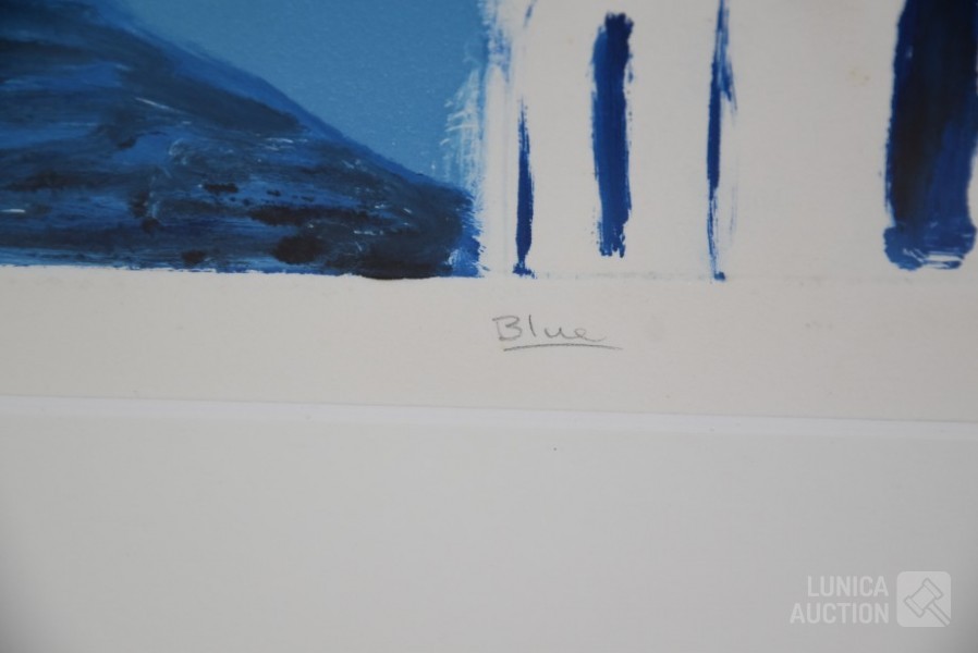 1989, Titel: 'blue". Ingelijst, achter glas. Handgesigneerd R.O. Afmeting 50x70 cm.