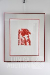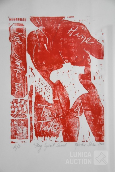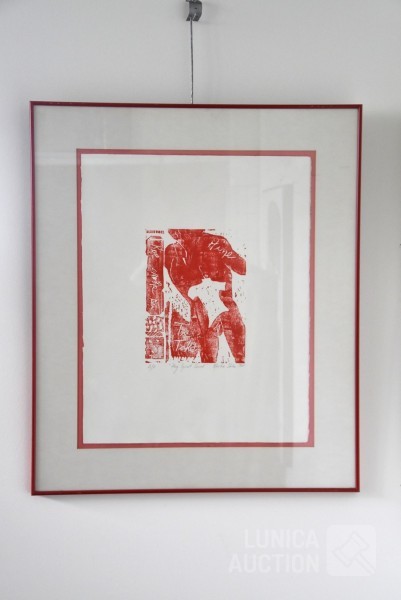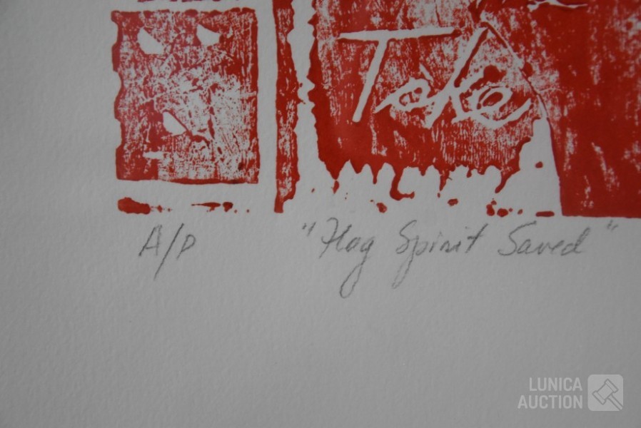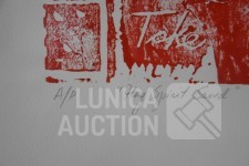 1997, Druk AP, Titel "Taku take rood". Ingelijst, achter glas. Afmeting 75x87 cm. Gesigneerd R.O.