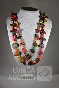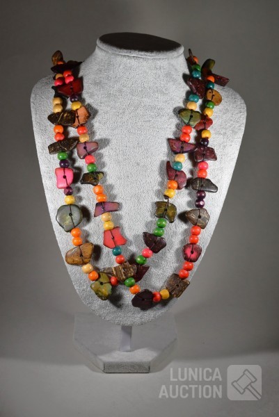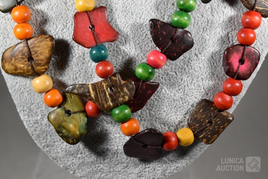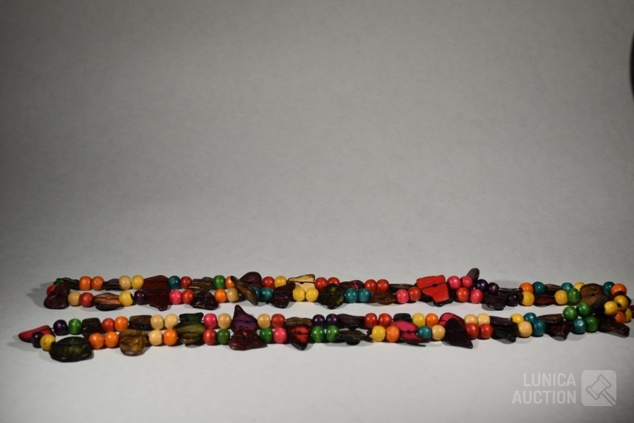 Diverse houtsoorten. Lengte 125 cm! Ketting is gesloten.