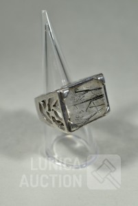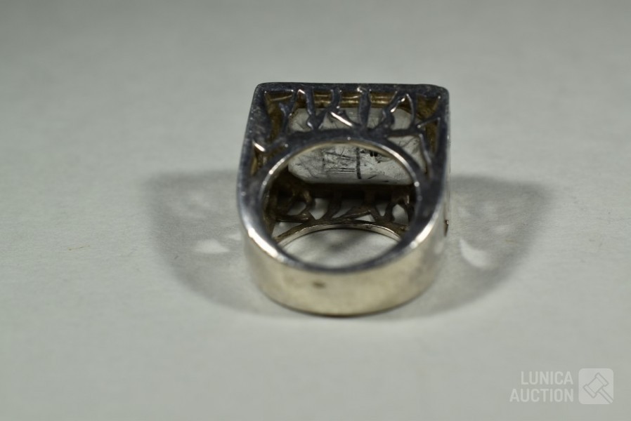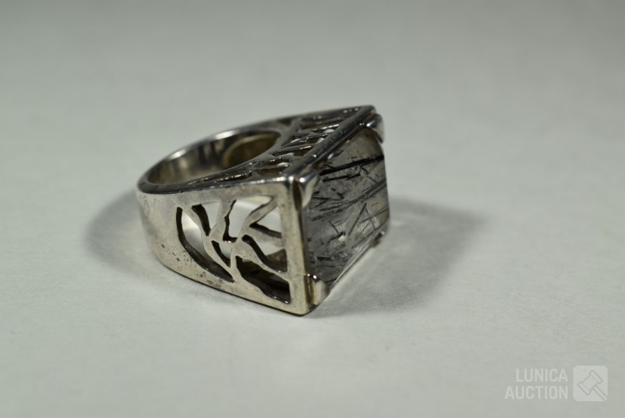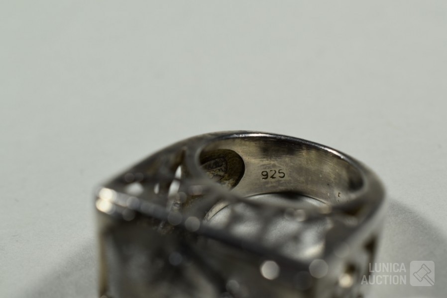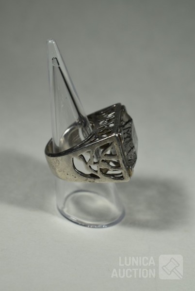 handgemaakt, gemerkt met 925/Valles Dordal. Ringmaat 18 mm. Ring heeft inzet van toermalijn kwarts. Totaal gewicht ca. 19,6 gram. Afmeting bovenzijde ring 17x23 mm. Mooie ring.