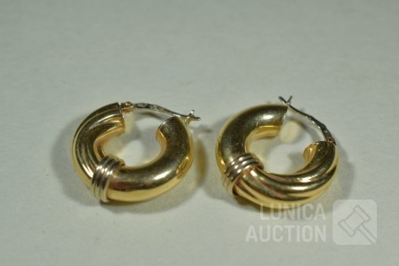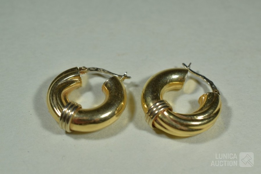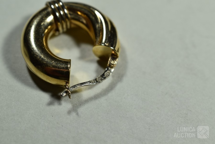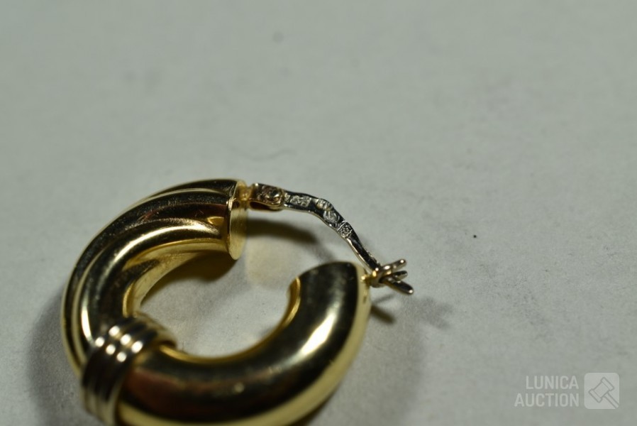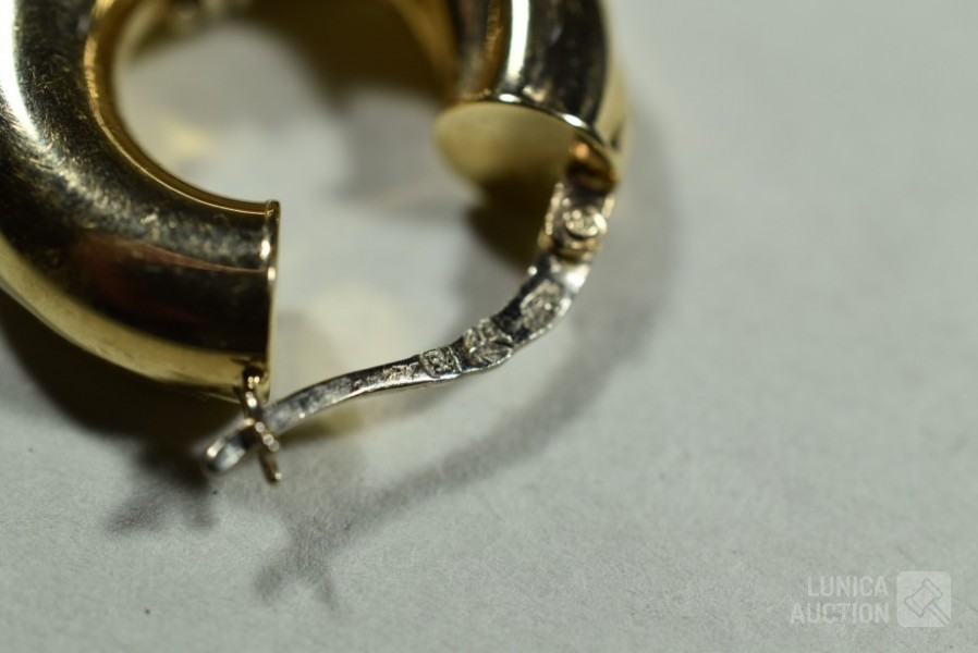gemerkt met 585. Totaal gewicht ca. 4,9 gram. Doorsnede oorsteker 21 mm