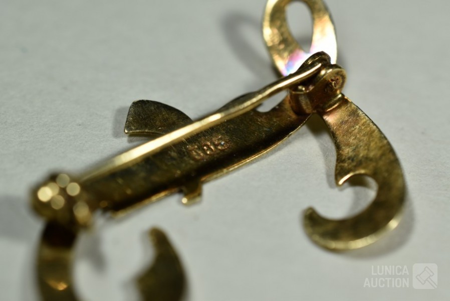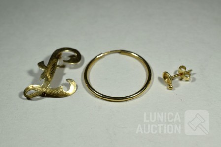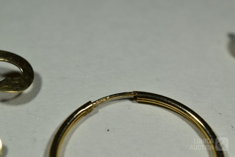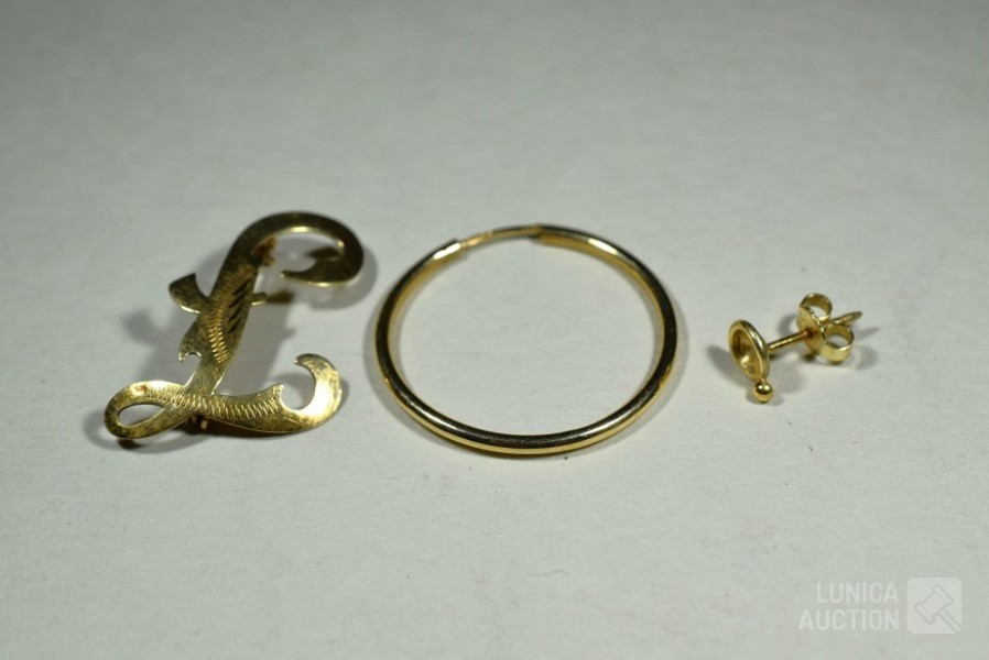 o.a. broche, één oorsteker, oorring. Totaal gewicht ca. 3 gram. Allen gemerkt met 585