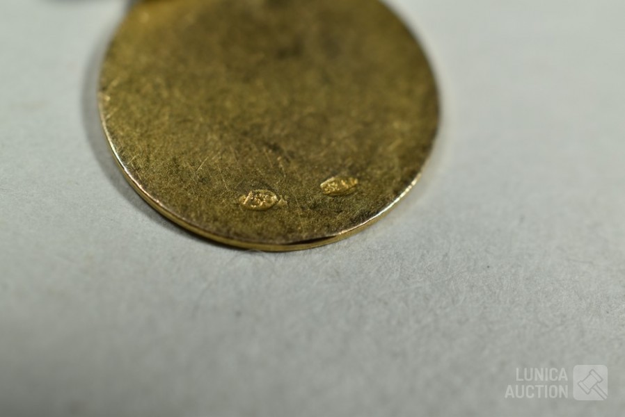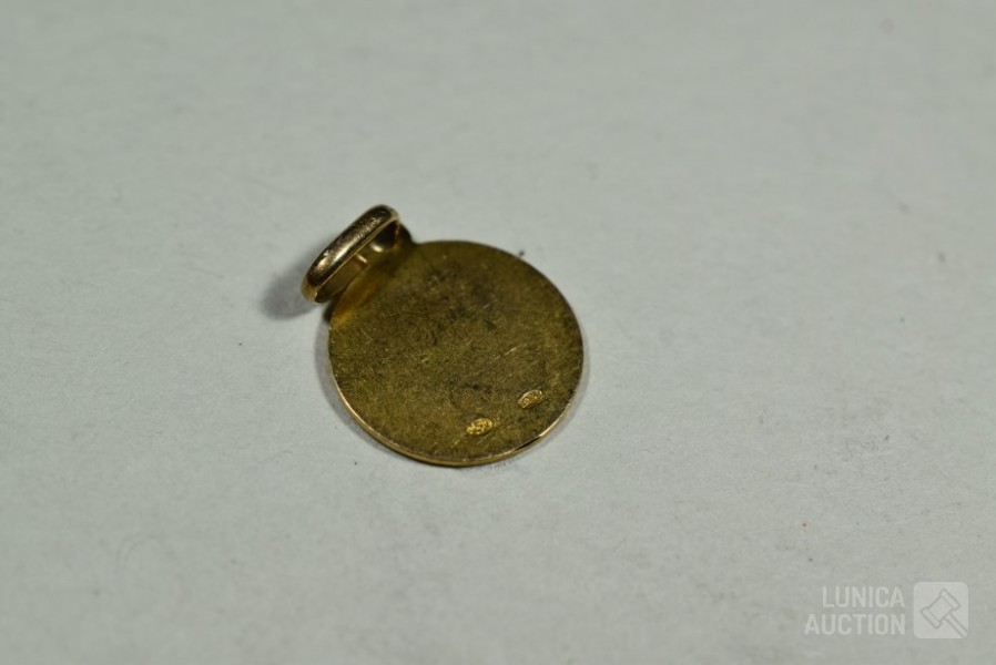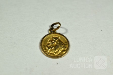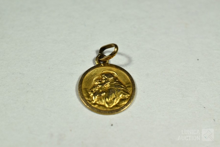 gemerkt met 750. Doorsnede bedel 12 mm. "Sint Antonius van Padua". Totaal gewicht ca. 1,3 gram