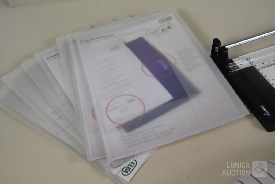 Inclusief Papiersnijmachine DAHLE type B507; Inclusief 8 ELBA transparante presenteermappen, A4