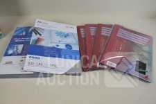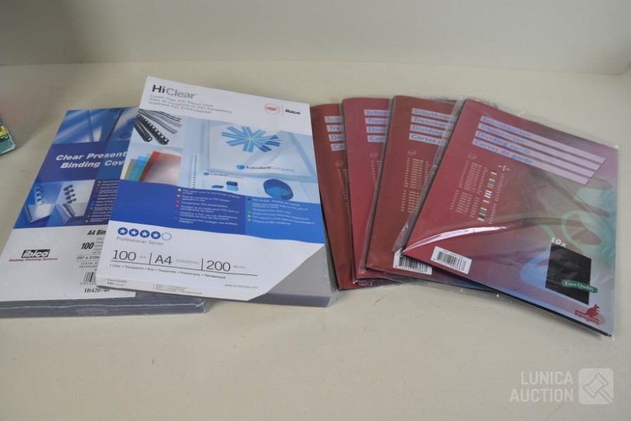 weinig gebruikt, nog in verpakking. Inclusief partijen nieuwe kunstsstof schudblad/bindomslagen, transparant/zwart