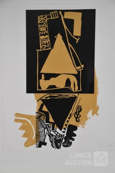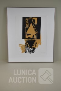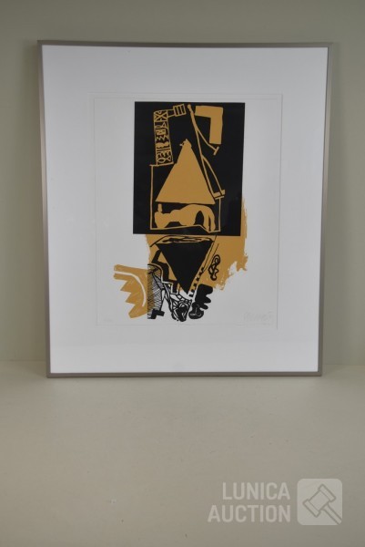 Oplage 49/100 Titel "Bei gelegenheit mehr". Ingelijst, achter glas. Handgesigneerd R.O. Afmeting 62x72 cm.