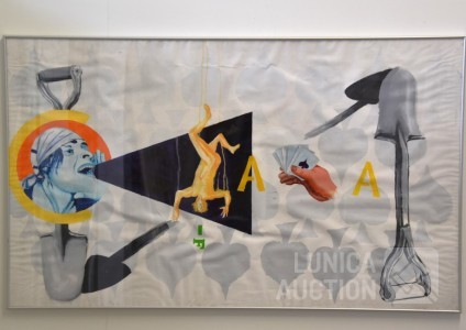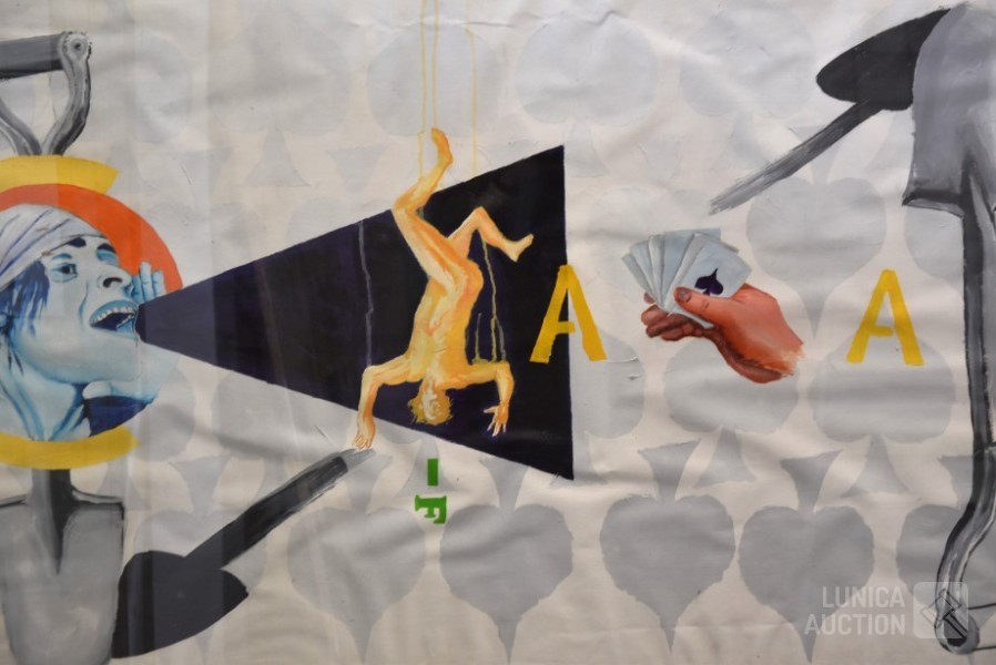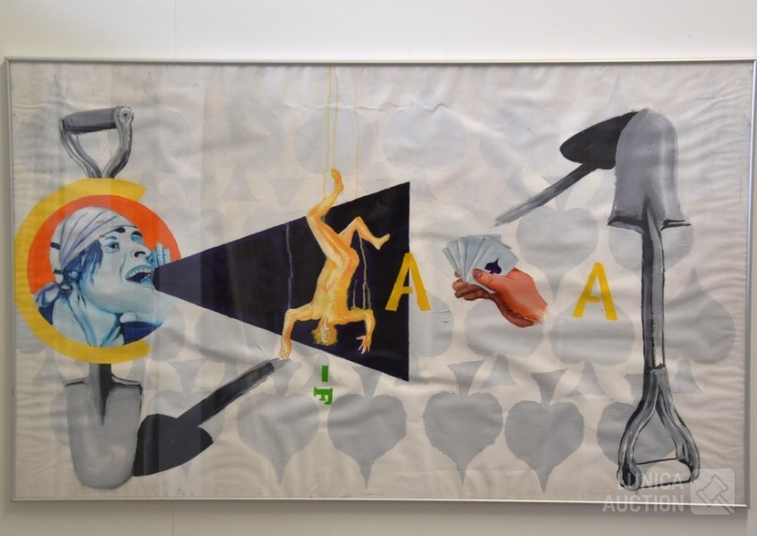 Titel: "Call a spade a spade", 1988. afm (bxh) 150x90 cm, acrylverf op papier, ingelijst achter glas . Gesigneerd