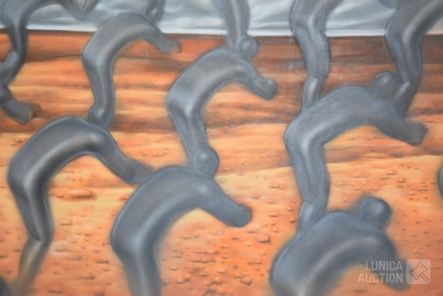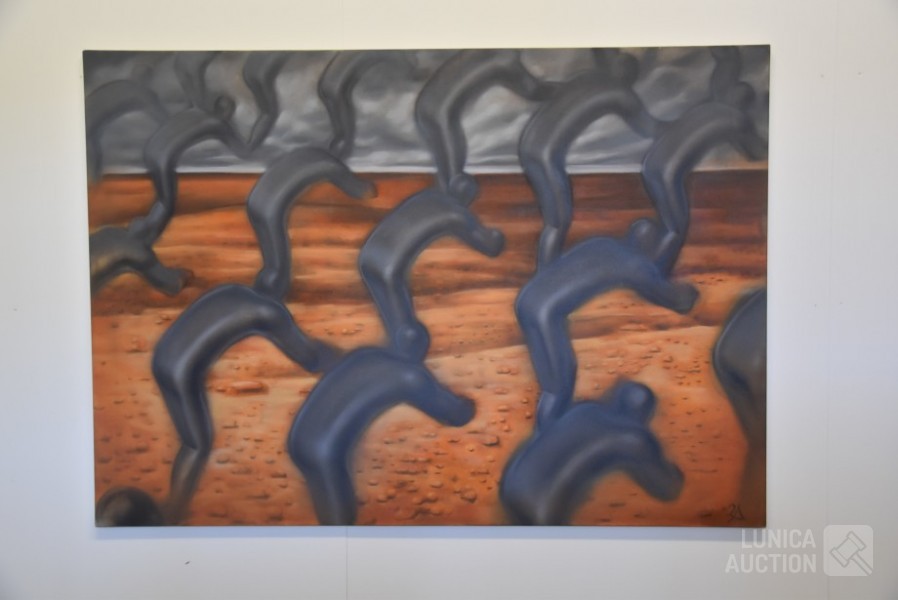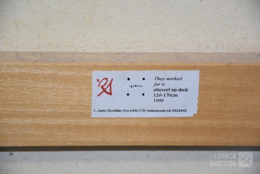 1999, "They worked for it", olieverf op doek. Afmeting 170x120 cm! Gesigneerd R.O.