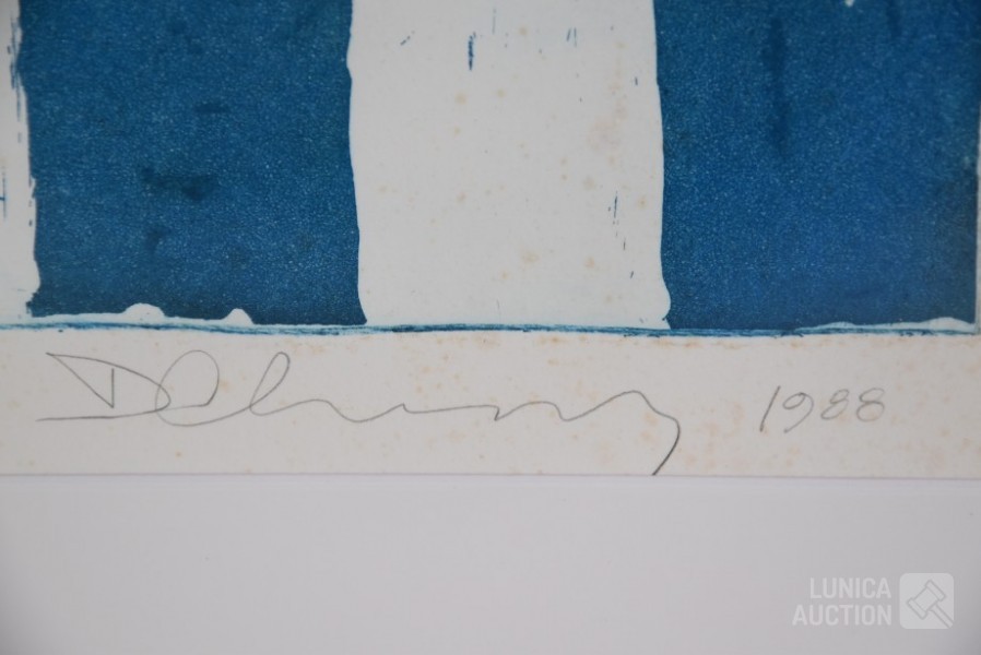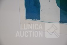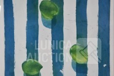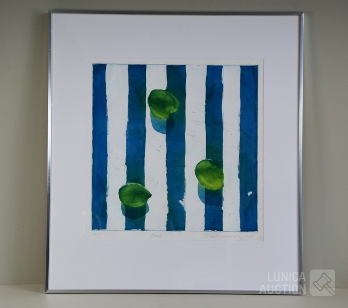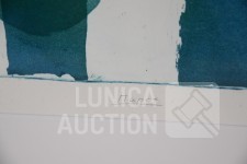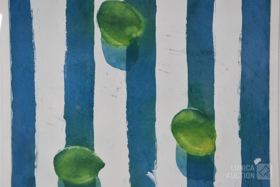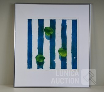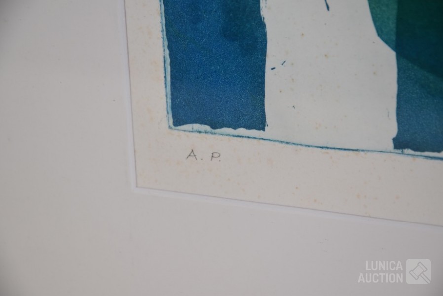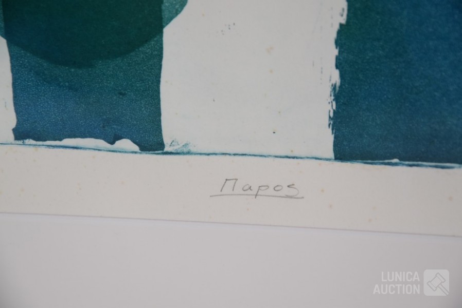 1988, Titel: "Napos", AP Ingelijst, achter glas. Afmeting 50x70 cm. Handgesigneerd R.O. Kleine gele vochtvlekjes in het papier, niet storend.