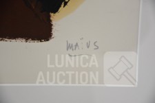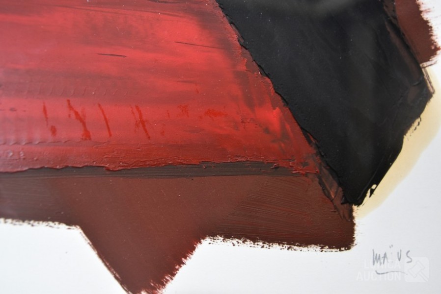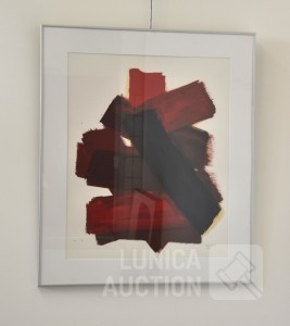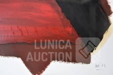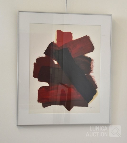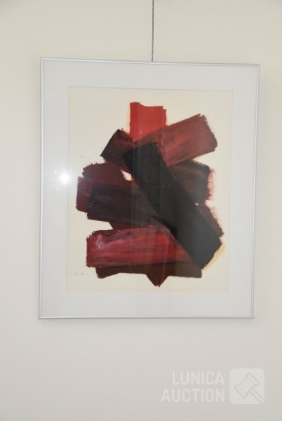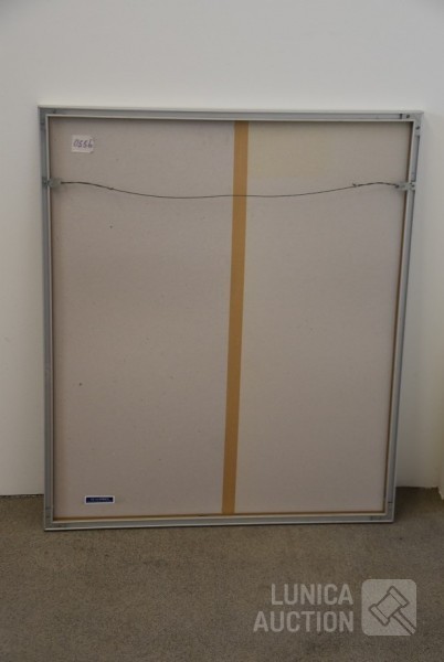 olieverf op papier. Titel: "vlakken I". Ingelijst, achter glas. Afmeting 70x90 cm. Gesigneerd R.O.