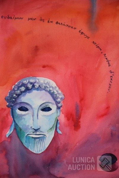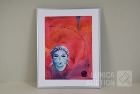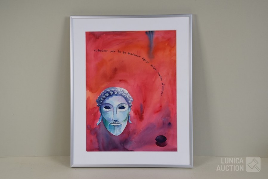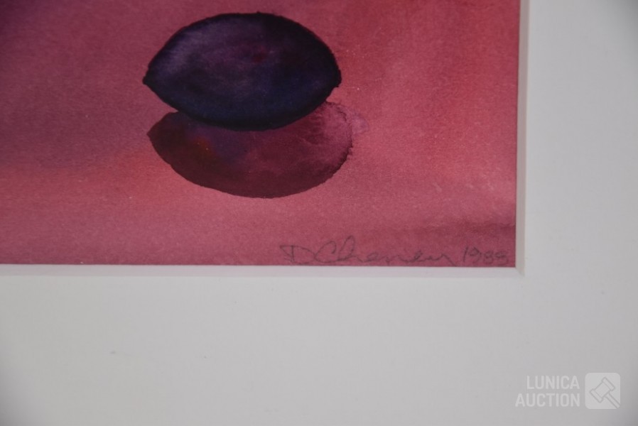 1989, Zonder titel. Gemengde techniek op papier. Ingelijst, achter glas. Afmeting 40x50 cm. Gesigneerd R.O.