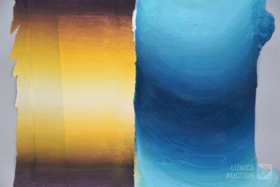 2000, oplage 17/20. Titel: "variationen" Acrylverf op papier. Ingelijst, achter glas. Afmeting 50x40 cm
