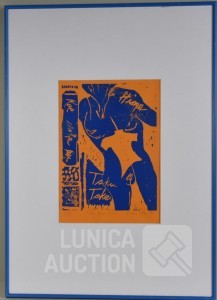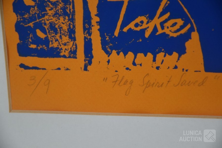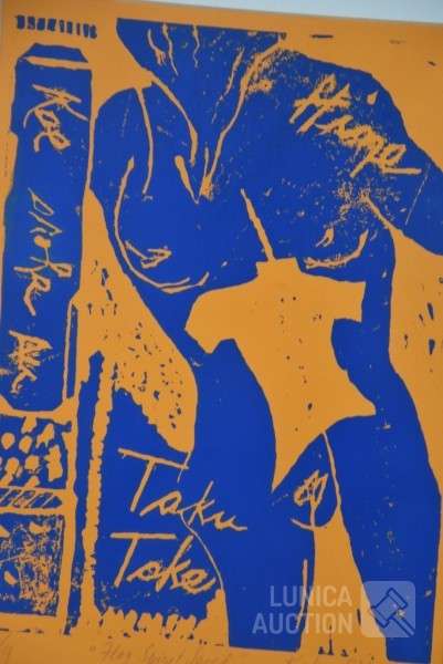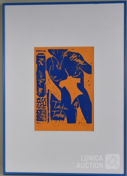 1988, Druk AP, Titel "Taku take blauw". Ingelijst, achter glas. Afmeting 50x70 cm. Gesigneerd R.O.