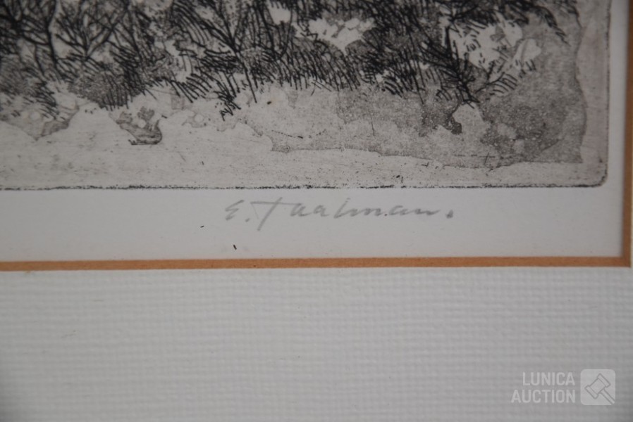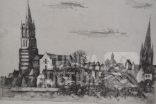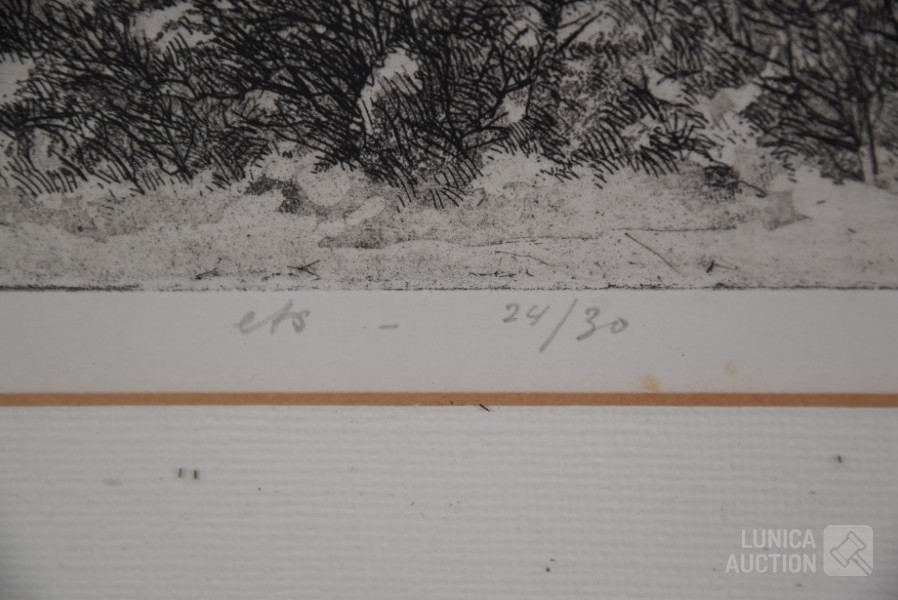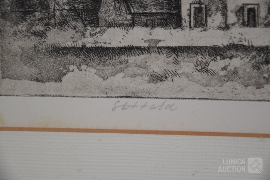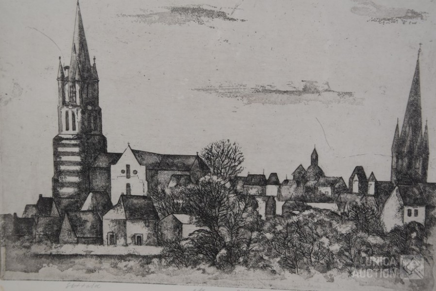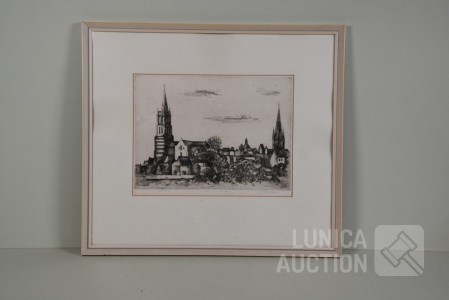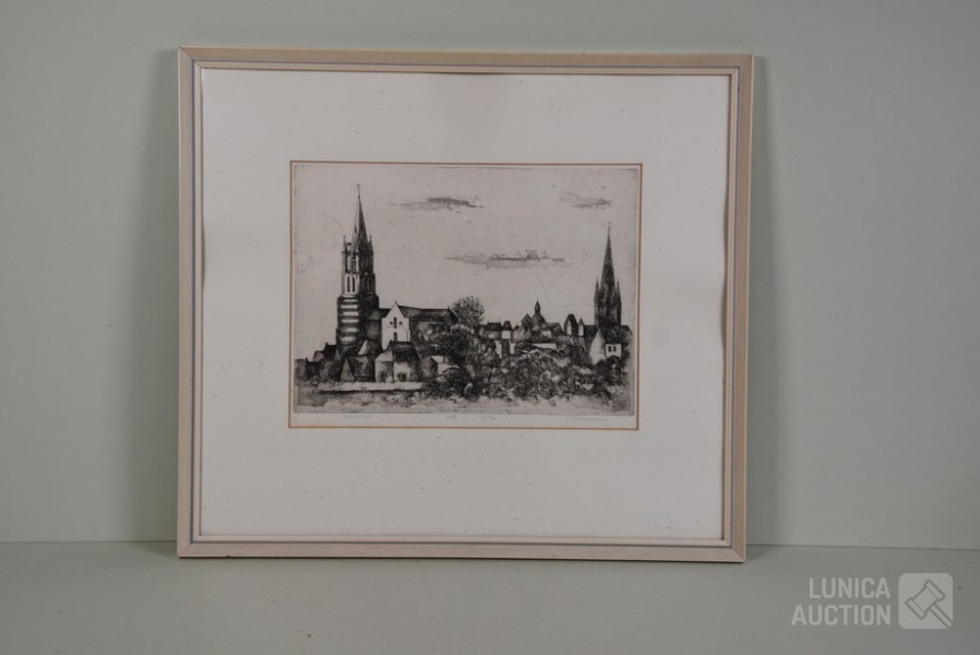 "Stadsgezicht van Sittard", oplage 24/30. Handgesigneerd, R.O. Ingelijst, achter glas, afmeting 55x50 cm.