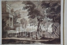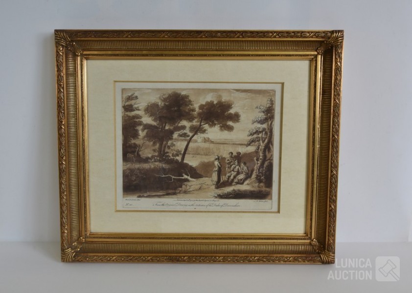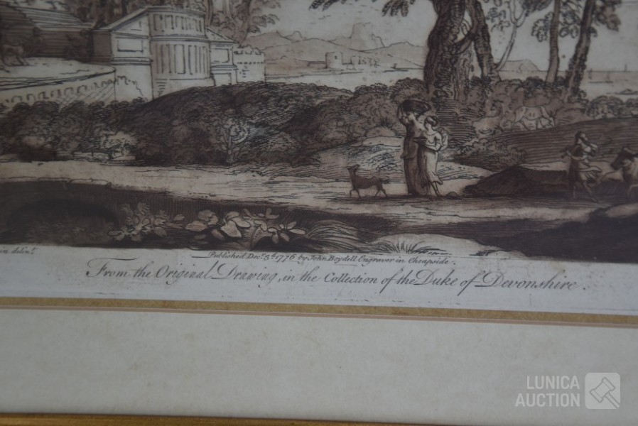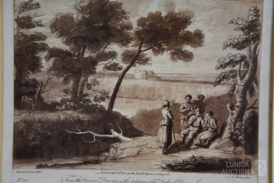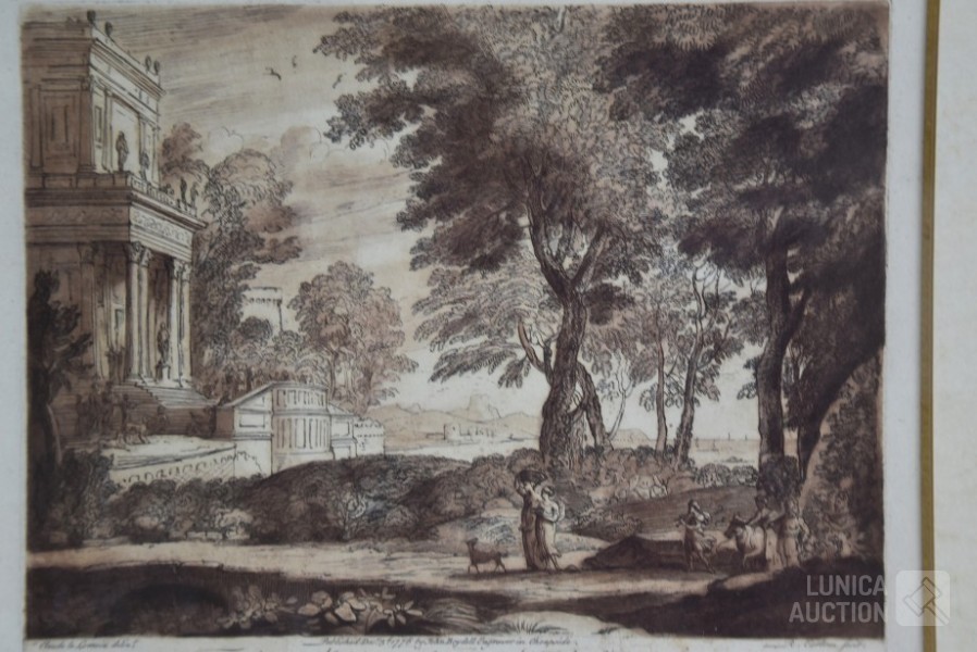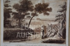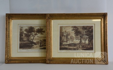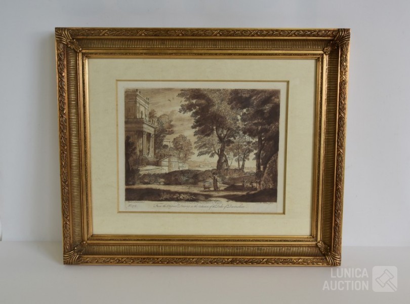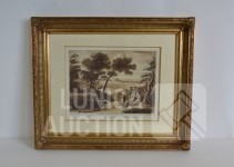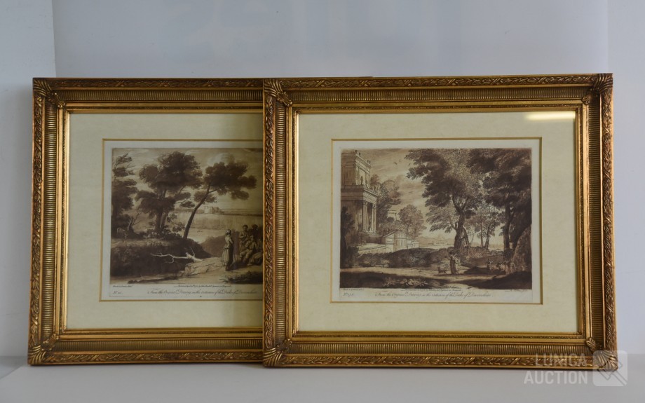 Naar voorbeeld van "Claude lorrain nummer 35 en 178". Professioneel ingelijst, achter glas. Afmeting 60x50 cm.