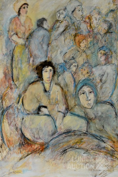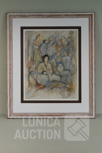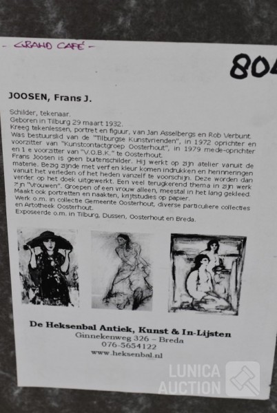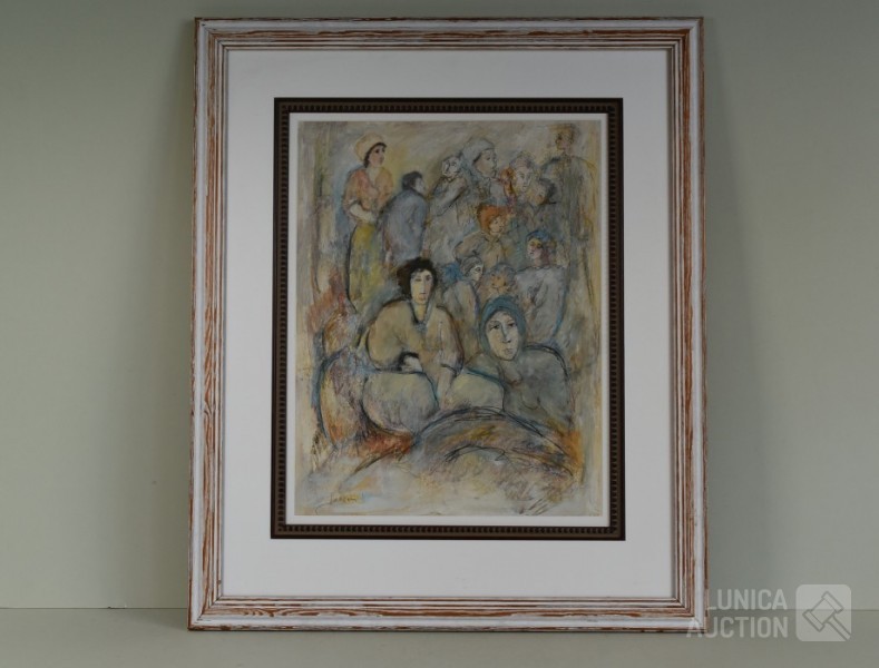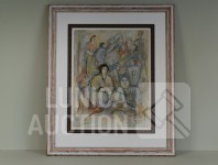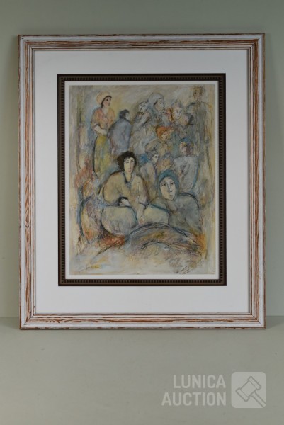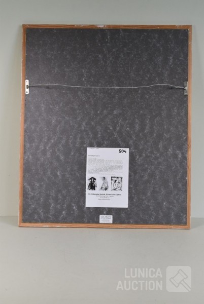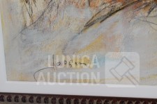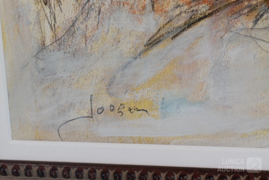 gesigneerd L.O. Ingelijst achter glas. Afmeting 61x73 cm