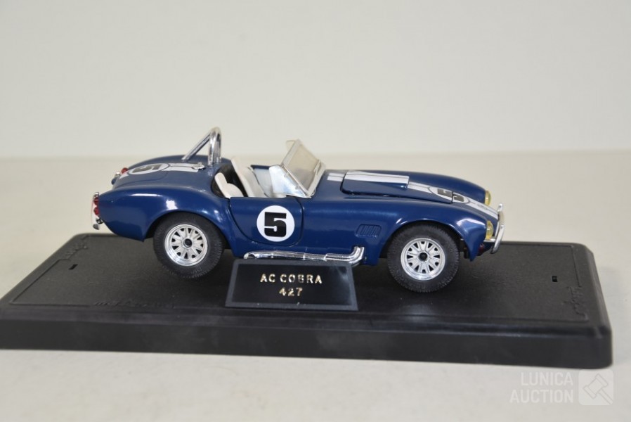 Schaal 1:24, kleur blauw , doos in redelijke staat. Artikelnummer 4104. Metaal met kunststof onderdelen.