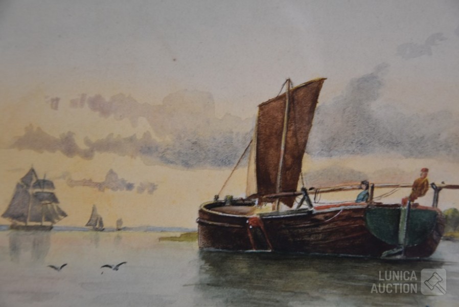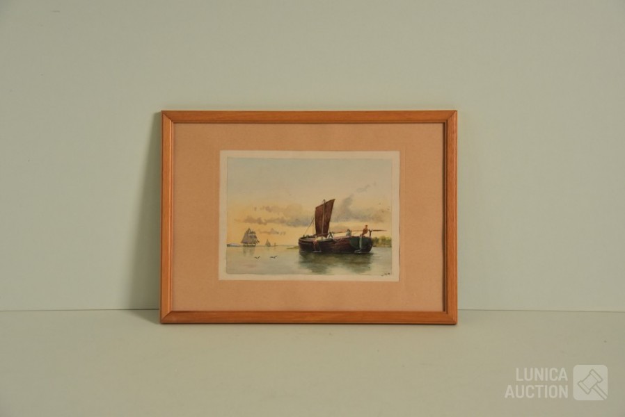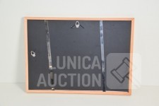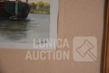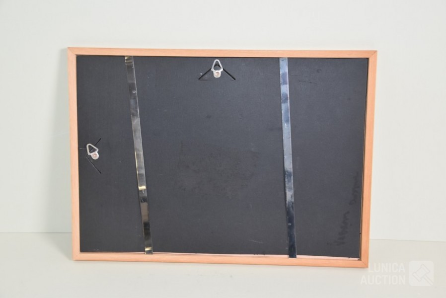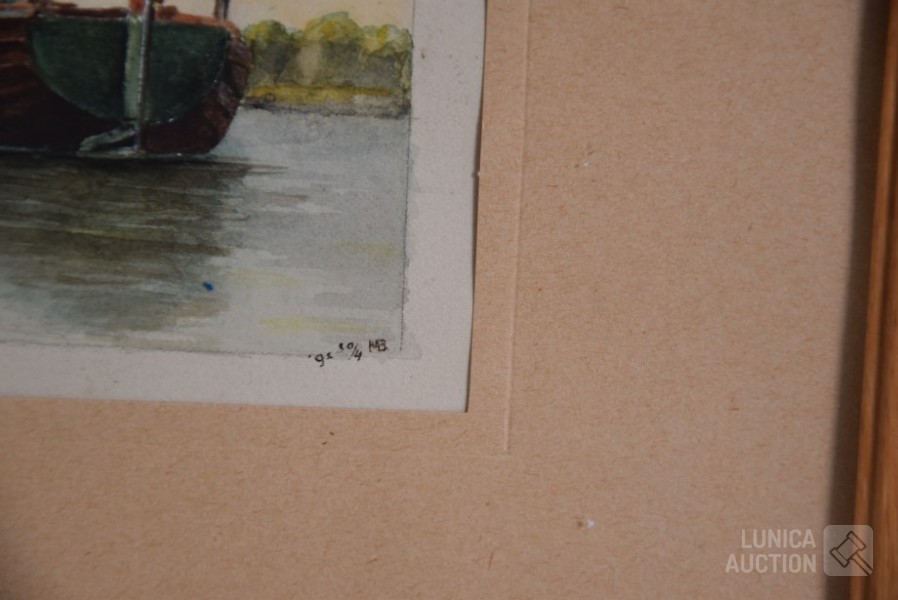 Ingelijst, achter glas. Afmeting 32x23 cm. Gesigneerd R.O met monogram MB.