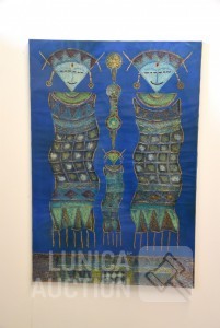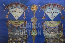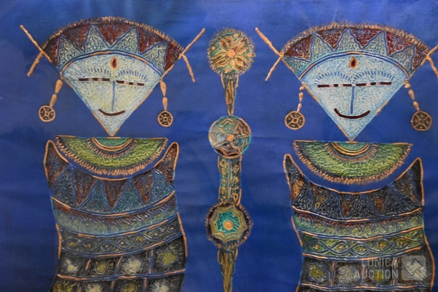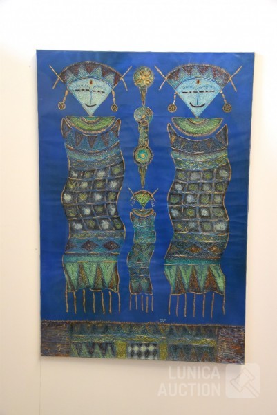 gesigneerd M.O. met "Balok Ubud", "2 vrouwen en kind". Afmeting 85x125cm !