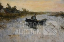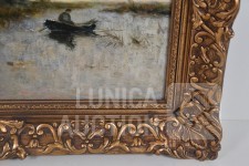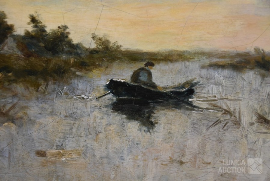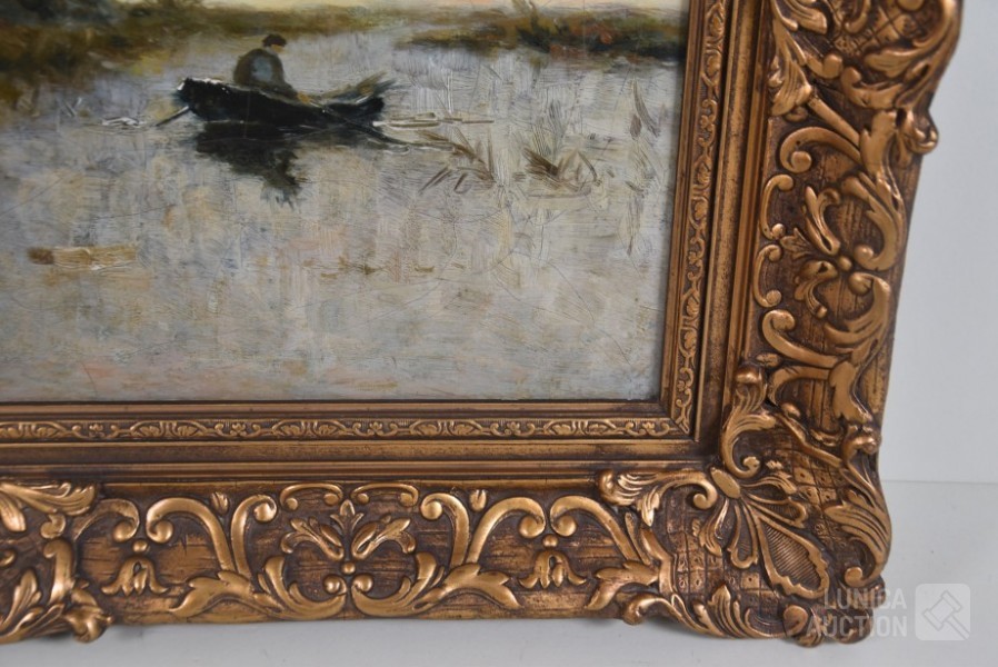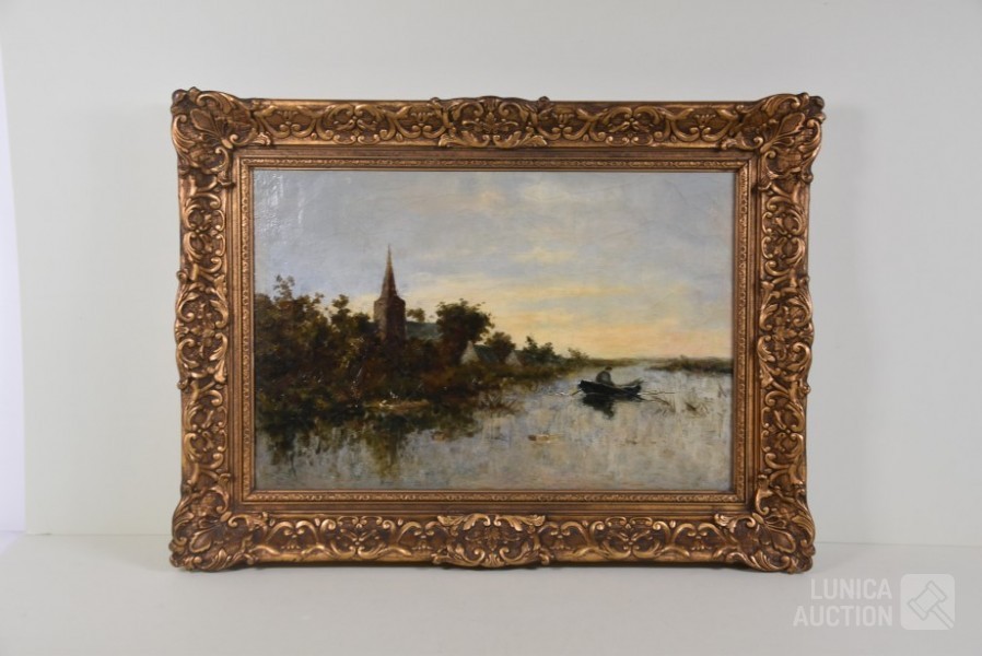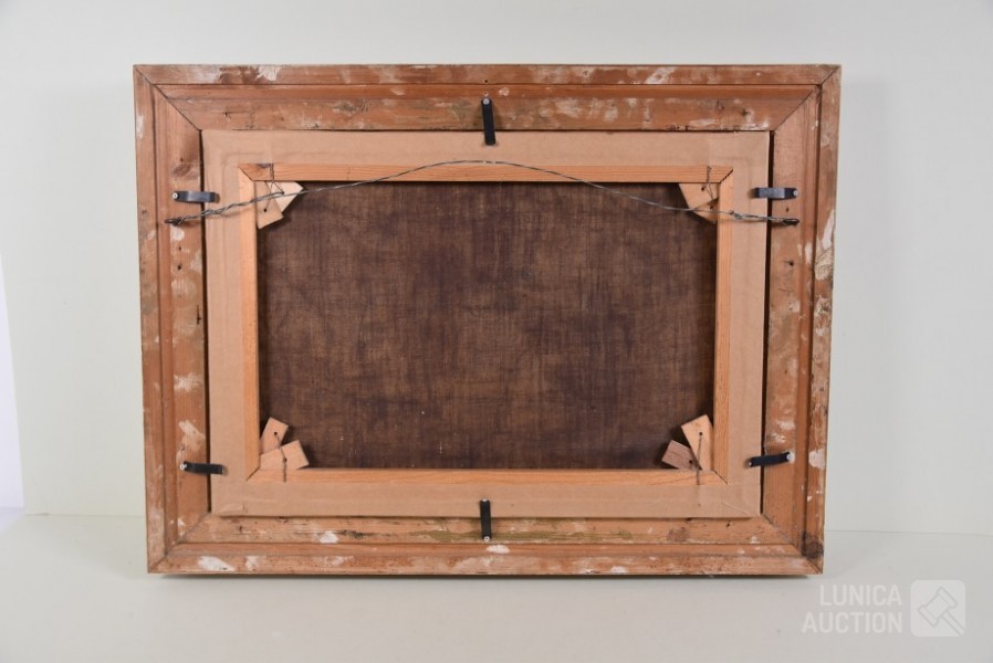 Niet gesigneerd. Doek heeft craquelé. Doek is bedoekt. Ingelijst, Afmeting (bxh) 70x50 cm.