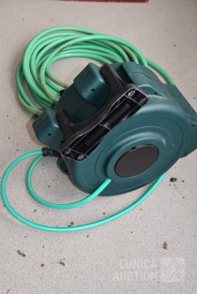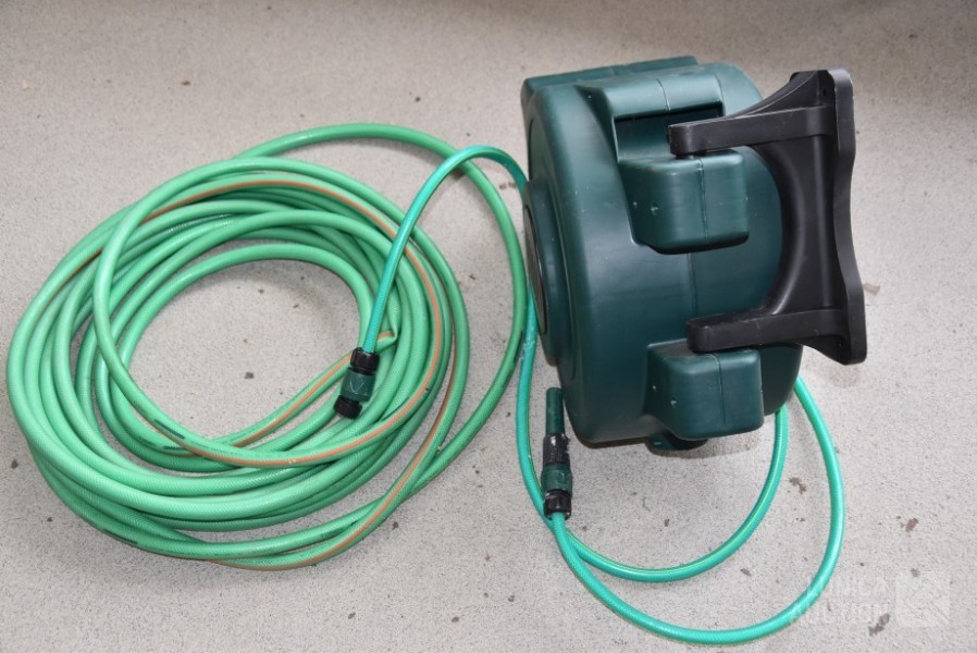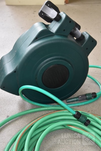 haspel met slang en losse tuinslang. Afmeting haspel (bxdxh) 50x28x45 cm.