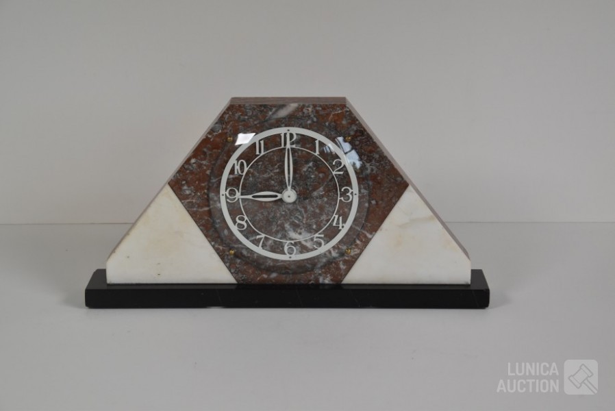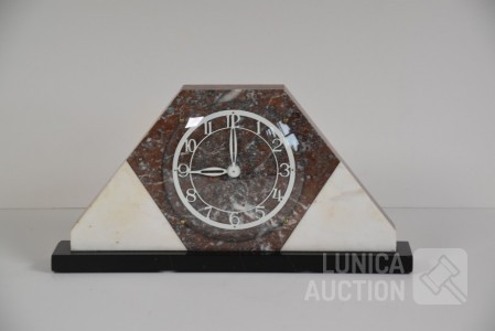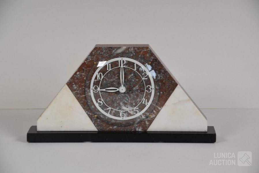 Art Deco. Afmeting (bxdxh)40x6x21 cm. Kleine chip op hoek van voet klok. Klok is niet getest.