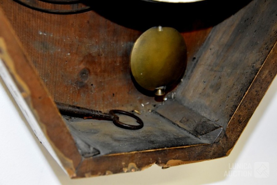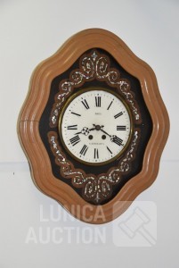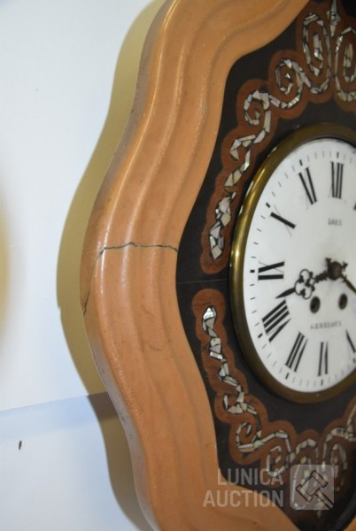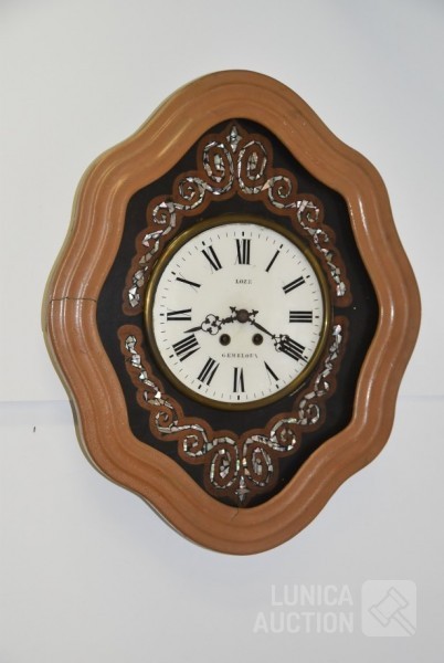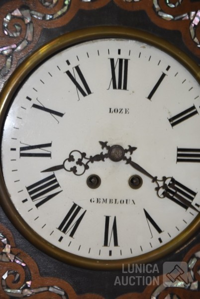 met inlegwerk van parelmoer, LOZE Gembloux, Afmeting (bxh) 50x62 cm, inclusief sleutel, werkend, niet uitgebreid getest. De glasplaat aan voorzijde ontbreekt.