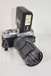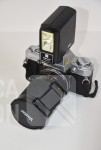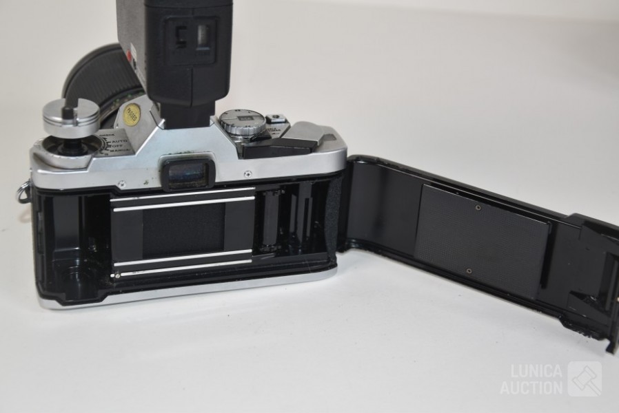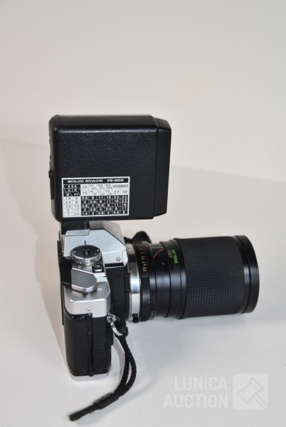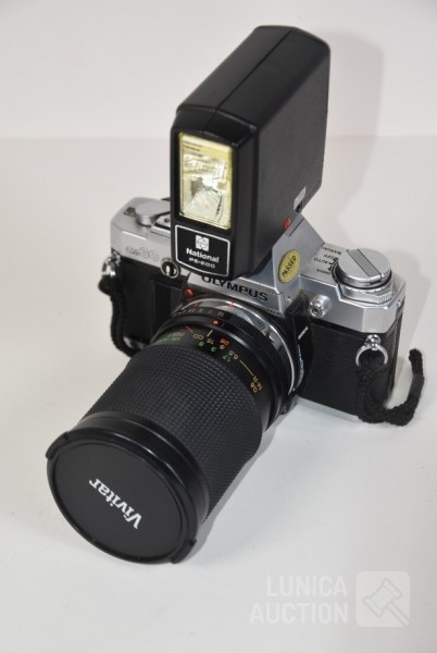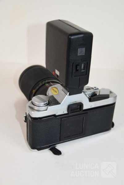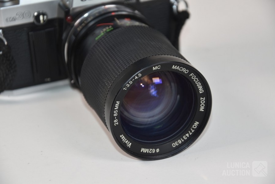 met objectief VIVITAR 28-85 mm, Ø 62mm; Flitser National PE-200; Inclusief opbergtas. Werking van apparatuur is niet bekend, niet getest.