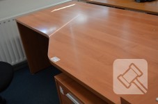 afmeting bureau (lxbxh) ca. 180x100/80x73 cm. afmeting ladenkast (lxbxh) 50x50x60 cm, 3 laden, verrijdbaar