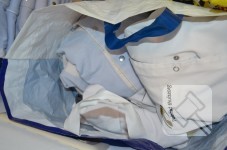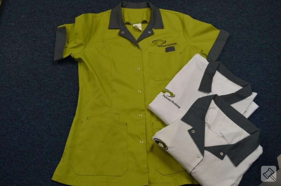 uniformen, nieuw en gebruikt, met logo opdruk; Rek is 1 meter breed