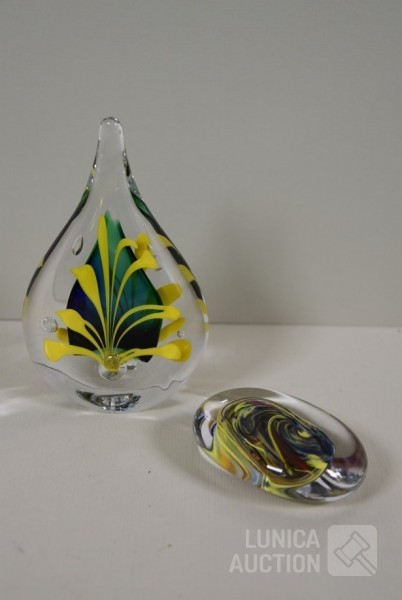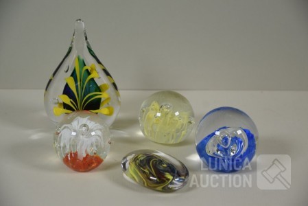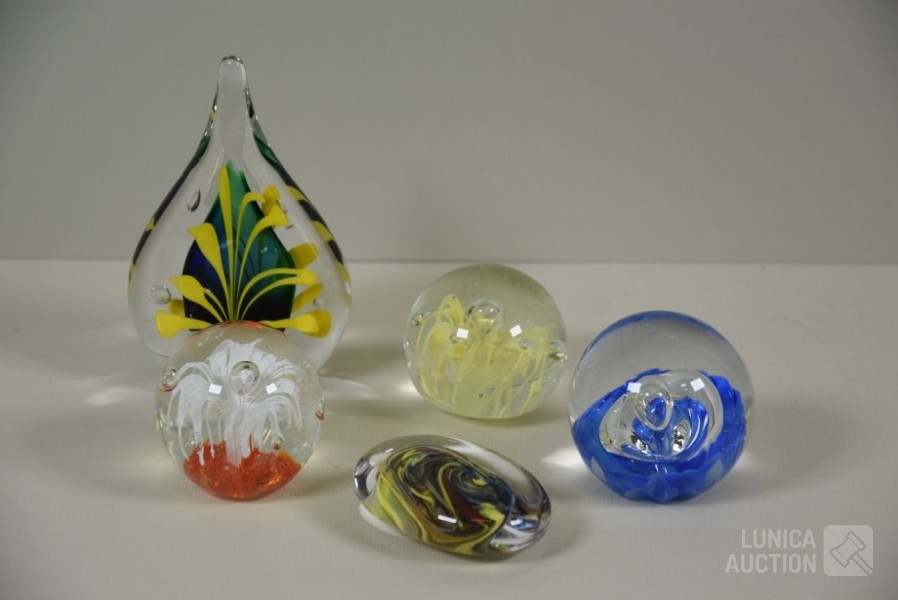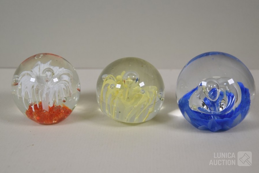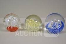 Doorsnede bollen ca. 6 cm; "Druppel", OZZARRO, hoogte 13 cm; "steen", afmeting 8x5 cm.