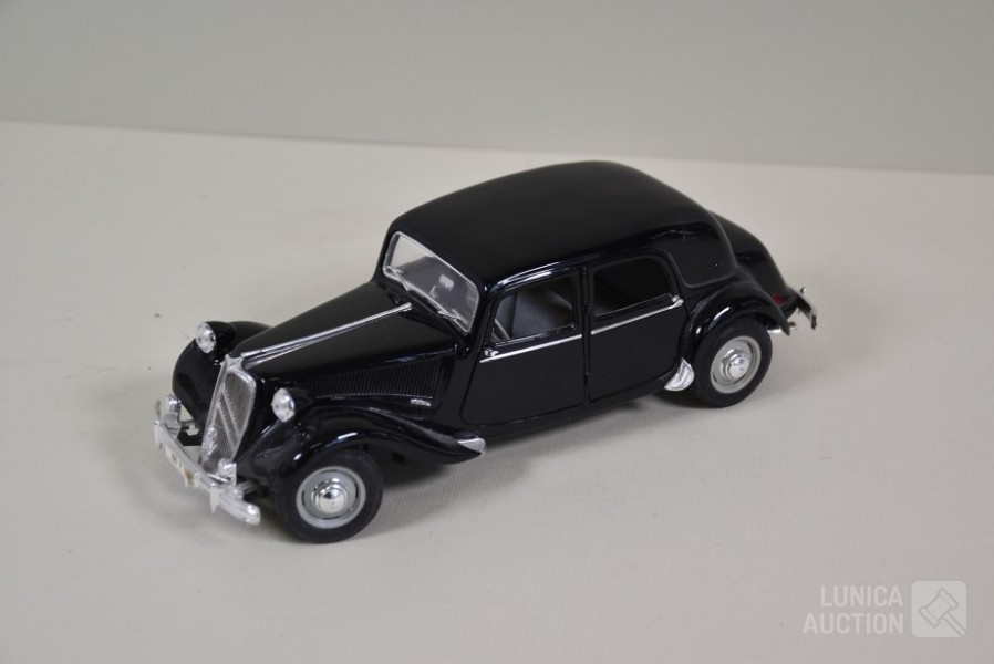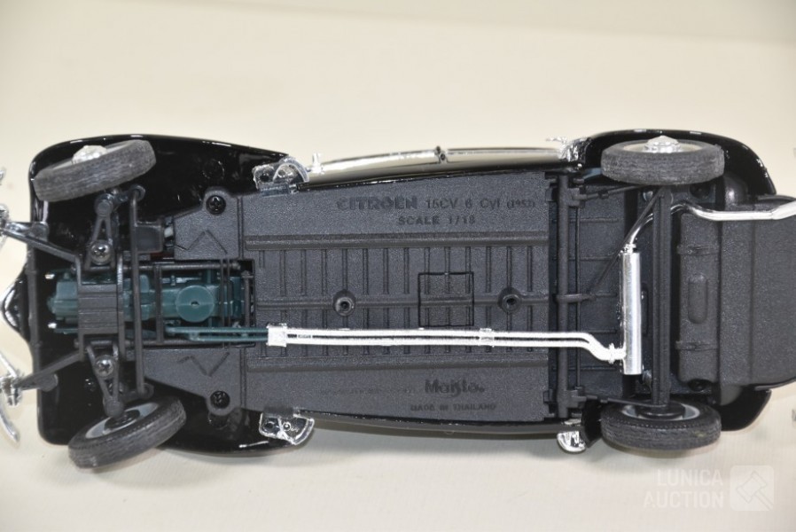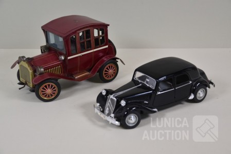 O.a. Citroën 15cv 1953, schaal 1:18, MAISTO; Blikken oldtimer, ROSKO "grand pa car", werkt op batterij, werking onbekend, afmeting (bxdxh) 24x12x14 cm.