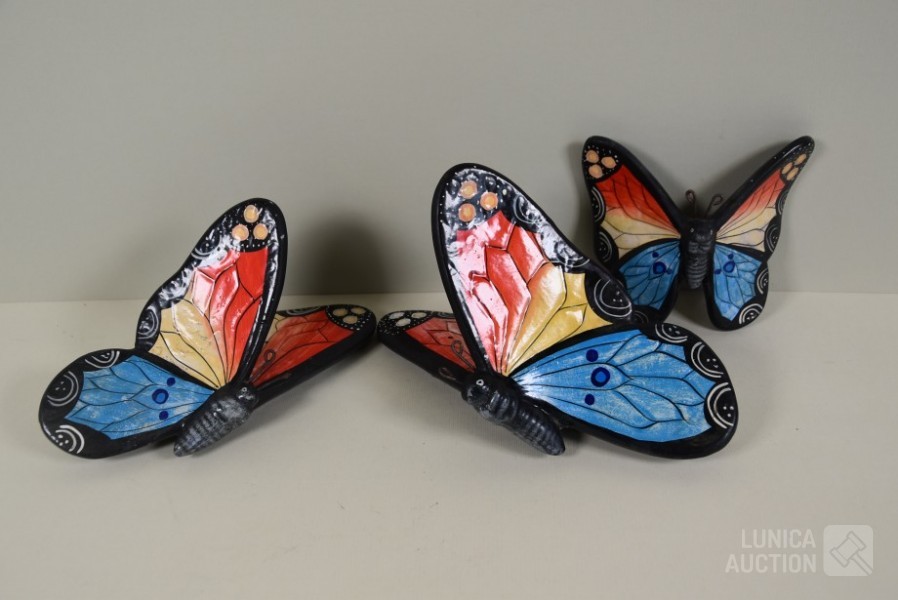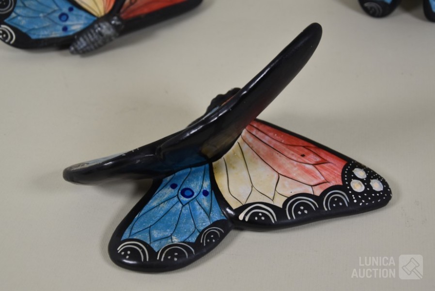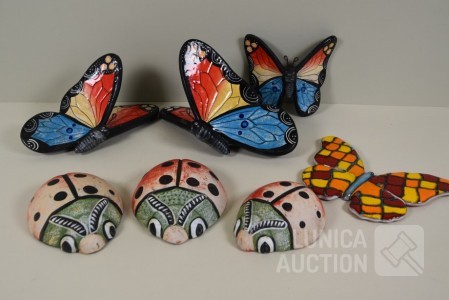 Vlinders en lieveheersbeestjes. O.a. gemaakt in Mexico. Afmetingen variëren van 11x13 cm tot 17x23cm.
