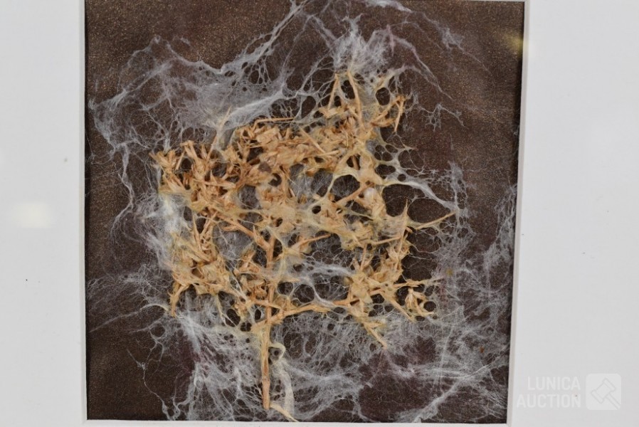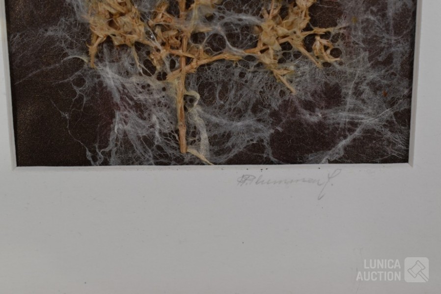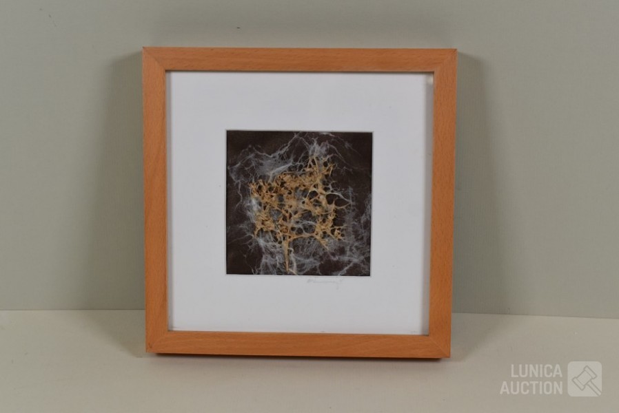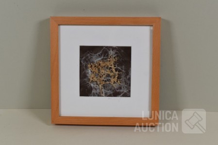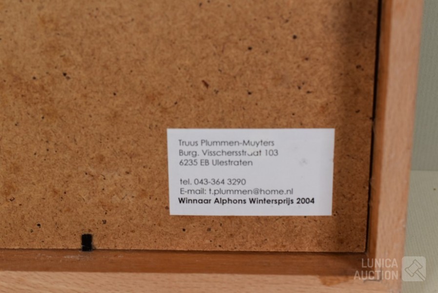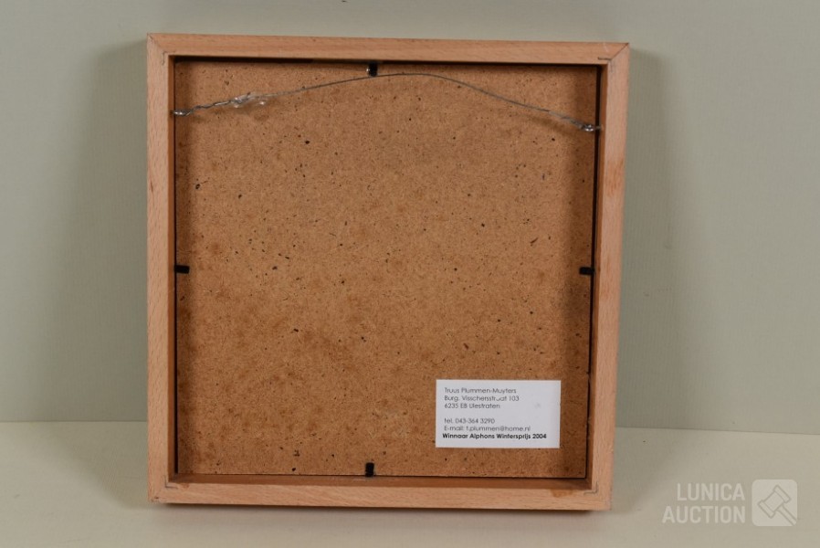 Mixed media. Winnaar Alphons Wintersprijs 2004. Ingelijst, achter glas. Afmeting 25x25 cm. Gesigneerd R.O.