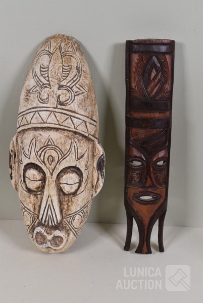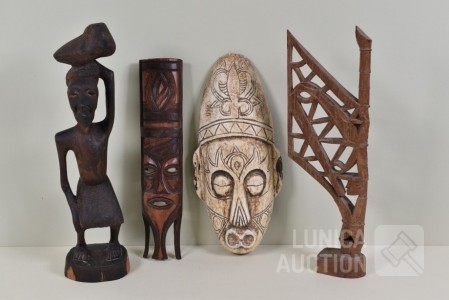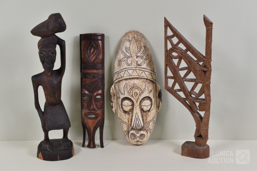 Afrika/Indonesië/Oceanië O.a. beeld, hoogte 37 cm; Maskers, hoogte 30 cm; Miniatuur Mimika , hoogte 36 cm