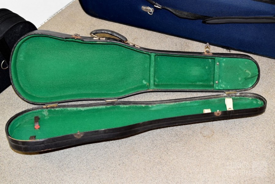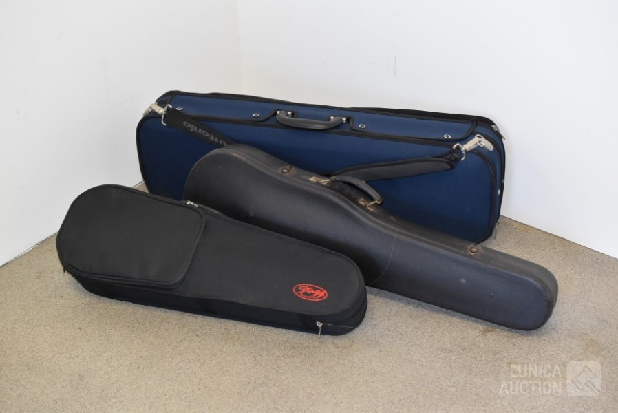 o.a. ANTONIO koffer met hygrometer, lengte 80cm; STAGG koffer, lengte 65 cm; Vintage koffer, lengte 80 cm. Koffers hebben gebruikerssporen.