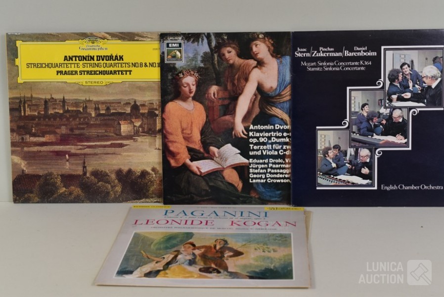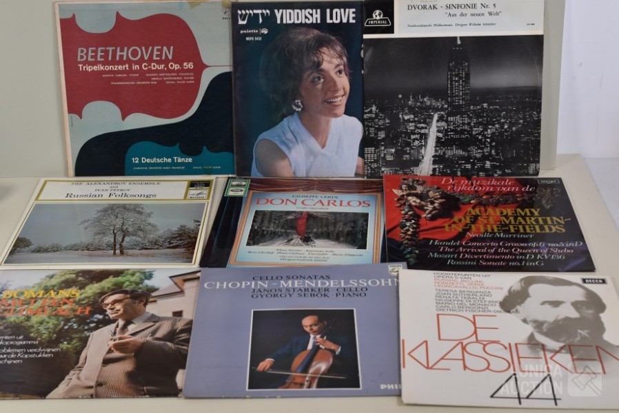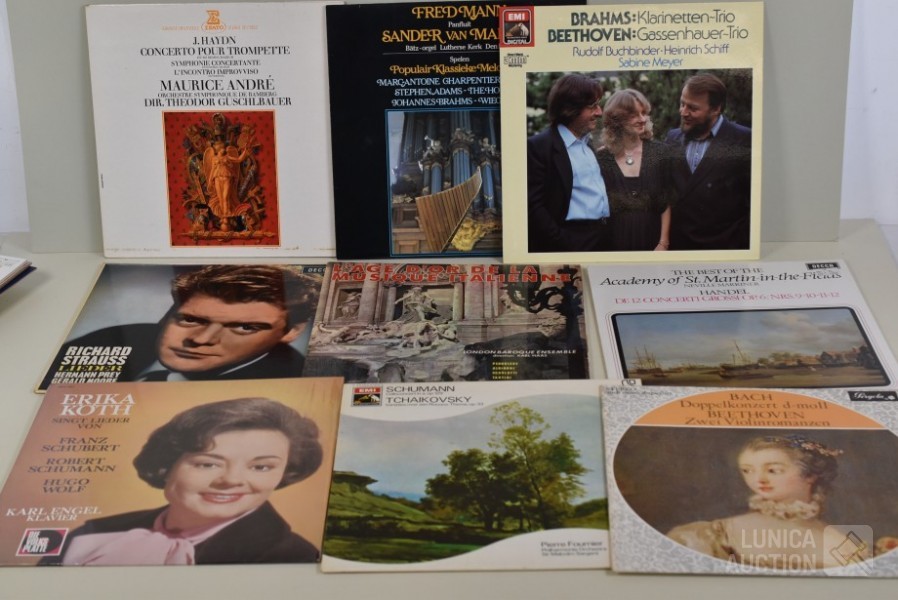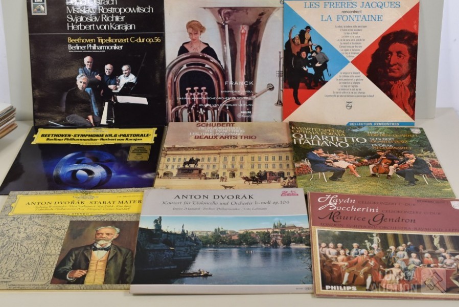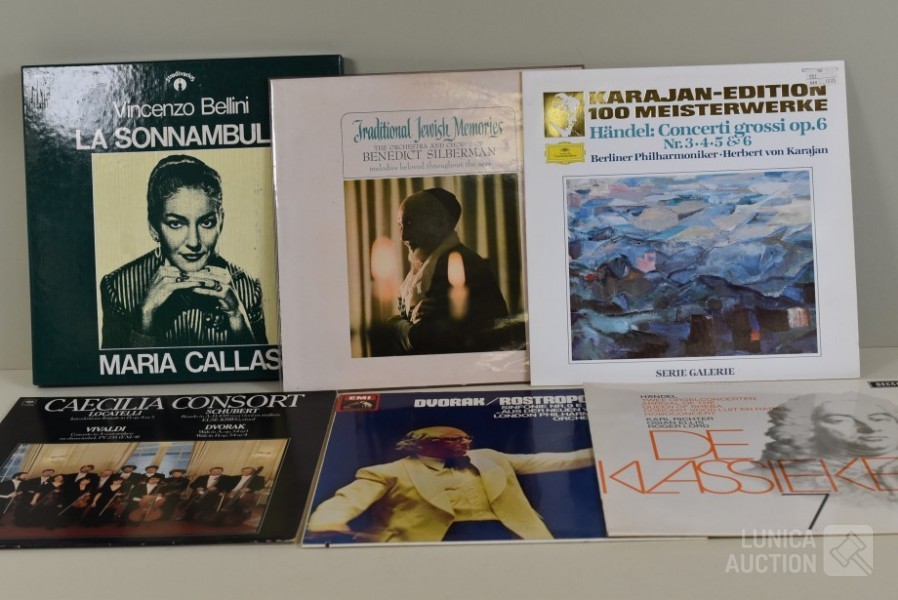 Diverse titels. Jaren'60 en '70 O.a. verzamelalbum "Beaux Arts Trio" met schubert; " verzamelalbum La sonnambula" van Vincenzo Bellini met Maria Callas; C. Franck met symphonie D-moll; Antonin Dvoràk; enz. Zie foto's