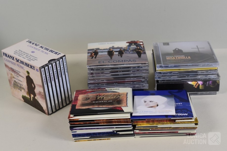 ca. 60 stuks Cd's, vooral klassieke muziek; ca. 28 DvD's, diverse genres